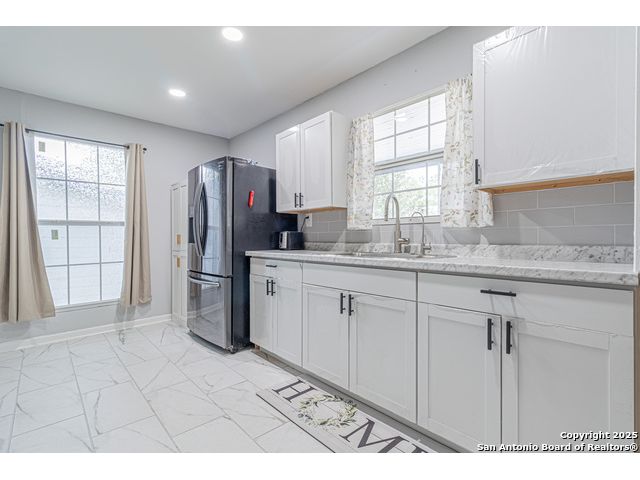 Charming and thoughtfully updated home in historic Woodlawn Lake! This 3-bedroom, 2-bath residence blends original character with modern upgrades across its 1,223 square feet. Step inside to find beautiful original hardwood floors and a fully renovated kitchen featuring updated cabinets, countertops, lighting, plumbing, a new gas stove (2025), and a refrigerator installed in 2023.. Primary bathroom have been remodeled with new tile, vanities, lighting, fixtures, and a new bathtub. Comfort is key with four mini-split AC/heating units, new ceiling fans, double-pane windows, and updated doors. Major system improvements include foundation leveling (2025), a new roof (2020), updated electrical, a 2017 water heater, and a 2015 privacy wood fence. The home also features a newly constructed front porch, fresh interior and exterior paint, and refreshed flooring in the kitchen and baths. Just minutes from Woodlawn Lake Park, this vibrant location offers access to trails, tennis and basketball courts, a playground, and a scenic lake with a boat ramp. Don't miss the opportunity to own a move-in-ready home in one of San Antonio's most established and walkable neighborhoods!