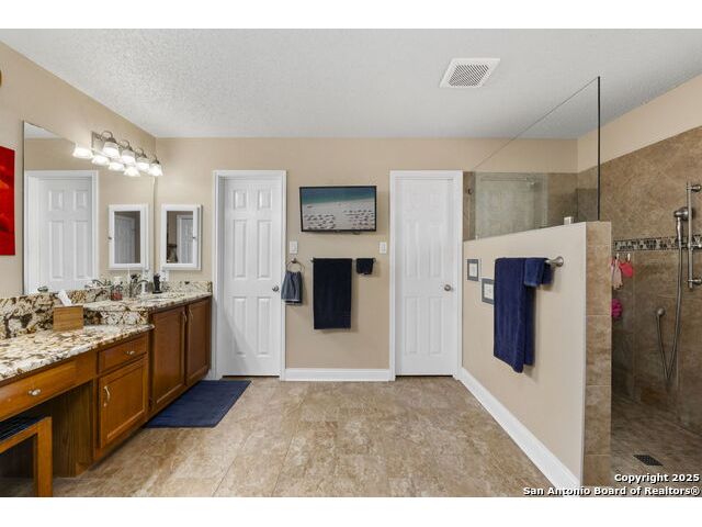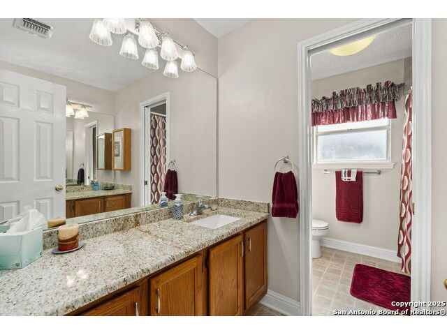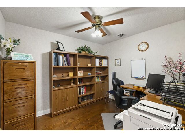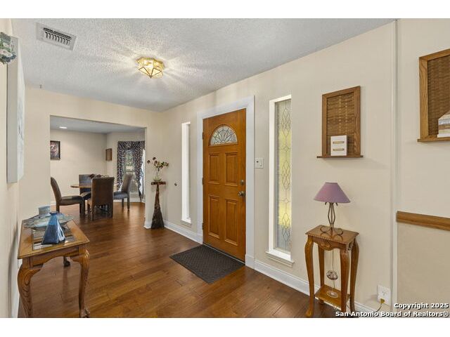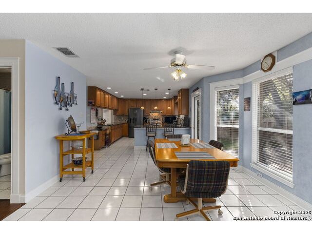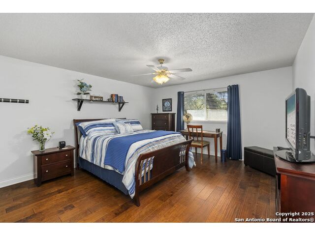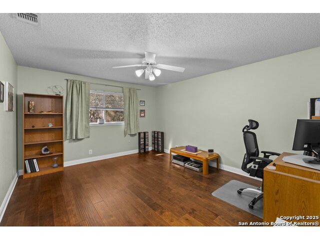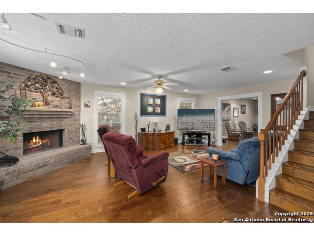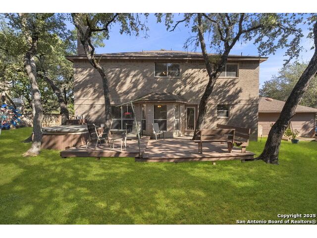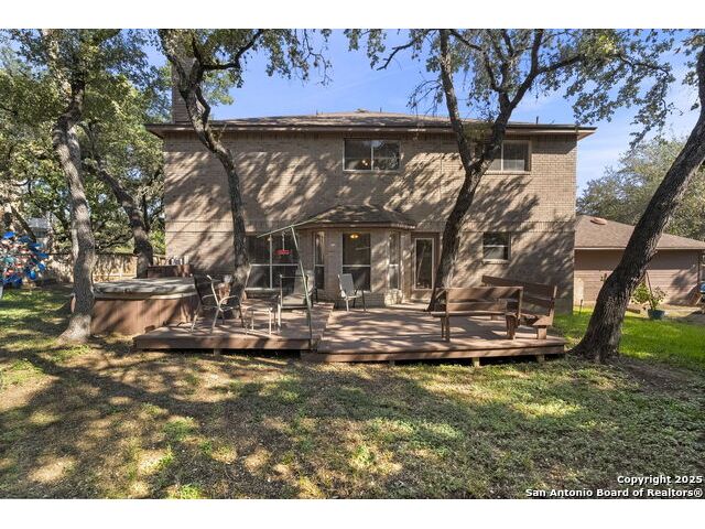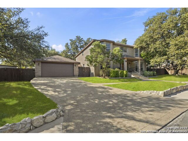 Set on nearly three-quarters of an acre in the highly desirable Northside ISD community of Braun Heights, this 5 bedroom, 3 bathroom two-story home offers space, comfort, and convenience in an established neighborhood with mature trees. The open layout flows from a welcoming living room with fireplace into a formal dining area, secondary living space, and a spacious kitchen featuring stainless steel appliances, a peninsula with bar seating, and striking countertops. A first-floor office adds flexibility for working from home, while all bedrooms are located upstairs, including the expansive primary suite with a large en-suite bathroom. Thoughtful details like a laundry chute to the main floor make daily living easier, and the oversized backyard shaded by mature trees provides plenty of room to relax or entertain. Neighborhood amenities include two centers with pools, tennis courts, and clubhouses, plus the convenience of nearby Medical Center, USAA, Fiesta Texas, The Rim, and Sea World. With a new roof being installed in October 2025, a new hot tub cover on the way, and negotiable furniture, this move-in ready property blends updates with timeless appeal, making it one of the largest and most inviting homes in the area.