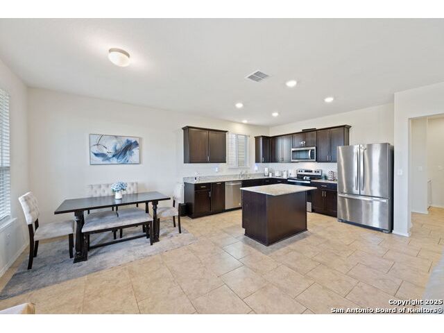 Welcome to 10627 Brady Creek Camp in Cinco Lakes! This beautiful 3-bedroom, 2.5-bathroom home sits perfectly on a quiet cul-de-sac, offering extra privacy and a peaceful setting. Step inside to an open floor plan that flows effortlessly from the spacious living room to the bright dining area and modern kitchen-perfect for entertaining or everyday family life. The kitchen features ample cabinet space, a large island, and modern finishes that make cooking and gathering a joy. Upstairs, you'll find a spacious primary suite with a private bath and walk-in closet, plus two additional bedrooms that provide plenty of space for family, guests, or a home office. Outside, the backyard offers a great area for relaxation, pets, or weekend barbecues. Located in the desirable Cinco Lakes community, you'll enjoy convenient access to local parks, shopping, dining, and excellent schools-all just minutes from major highways for an easy commute into San Antonio. Don't miss your chance to make this beautiful home your own-schedule your private showing today!