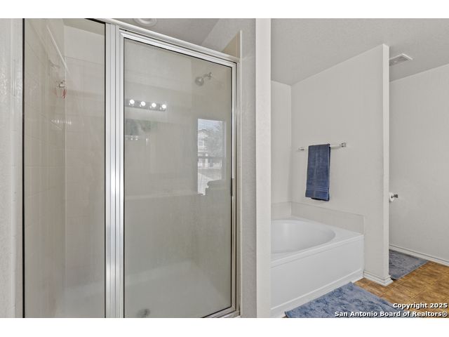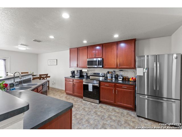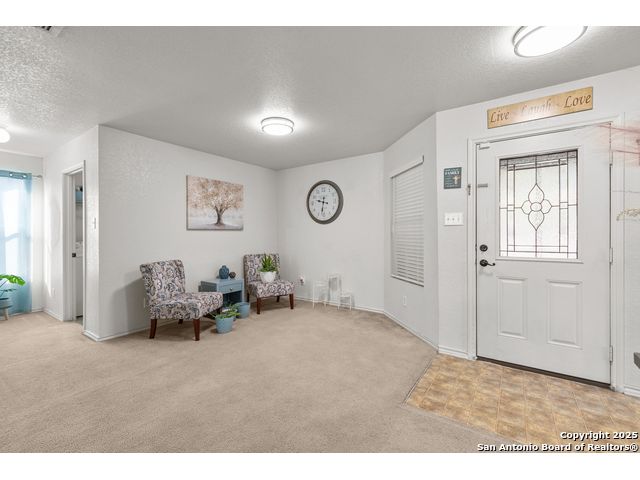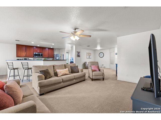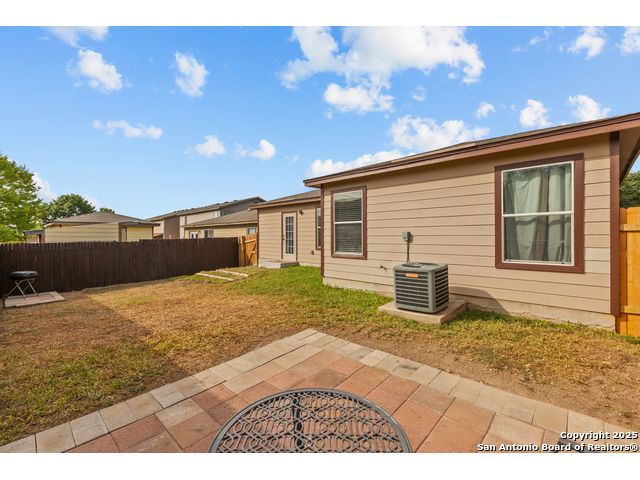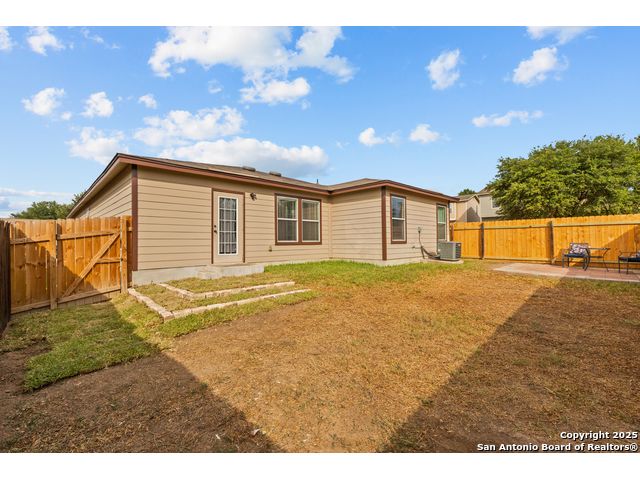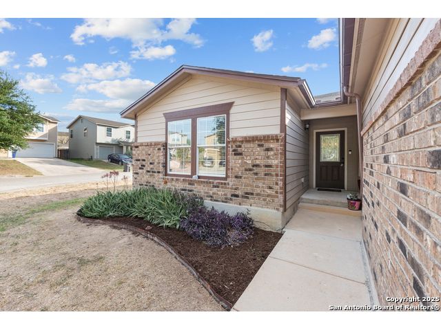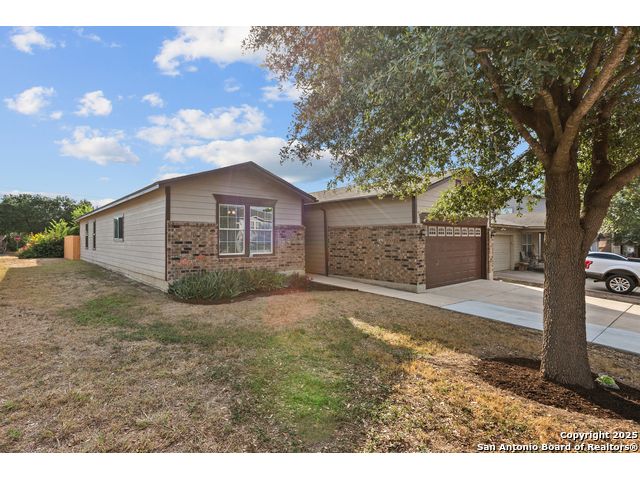 This inviting one-story home, set on a desirable corner lot, offers a thoughtful layout designed for both comfort and functionality. The entry opens into an airy, open-concept living space with a cozy sitting area and a spacious main living room-perfect for gathering. To the left of the entry, two secondary bedrooms and a full bath are ideal for loved ones, guests, or a home office. The functional kitchen is equipped with stainless steel appliances and a breakfast bar, seamlessly connecting to the dining area for easy entertaining. The primary suite is a true retreat, featuring a sitting room, generous walk-in closet, and a full bath with dual vanities, a separate shower, and a garden tub. Step outside to discover a paver patio and well-sized backyard-ready to be transformed into your dream outdoor space, whether you envision a pool, pergola, or custom entertaining area. Located just minutes from Hwy 151 and Loop 410, this home provides quick access to Lackland Air Force Base, SeaWorld, and a wide array of shopping, dining, and entertainment.