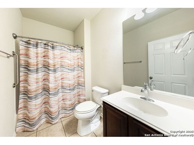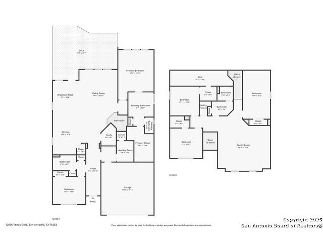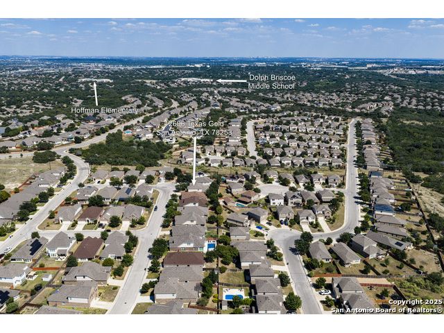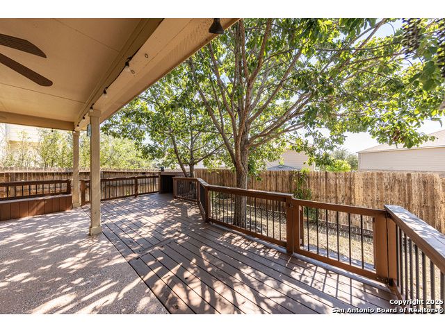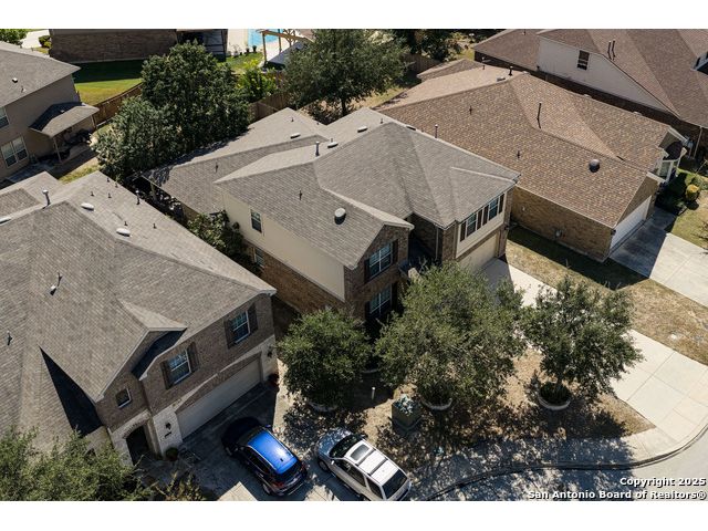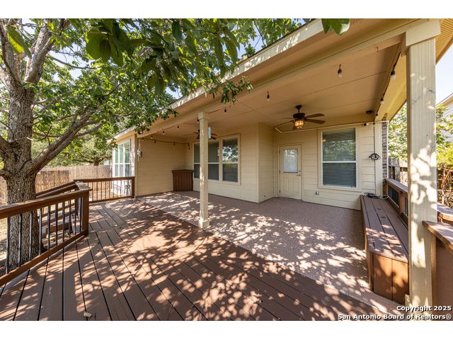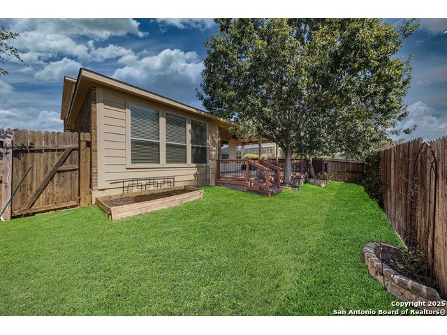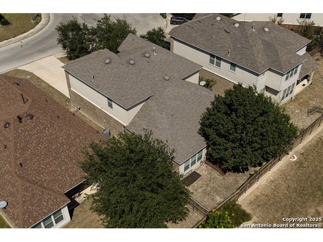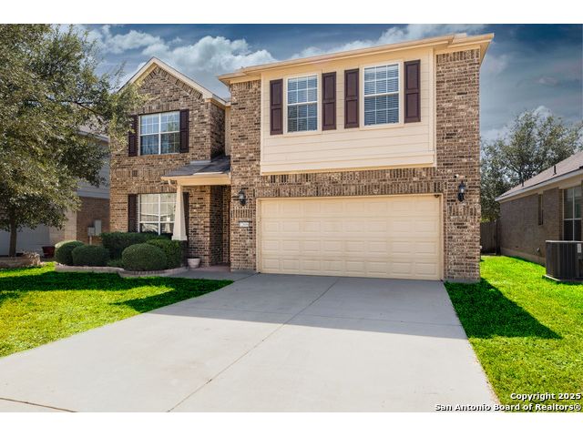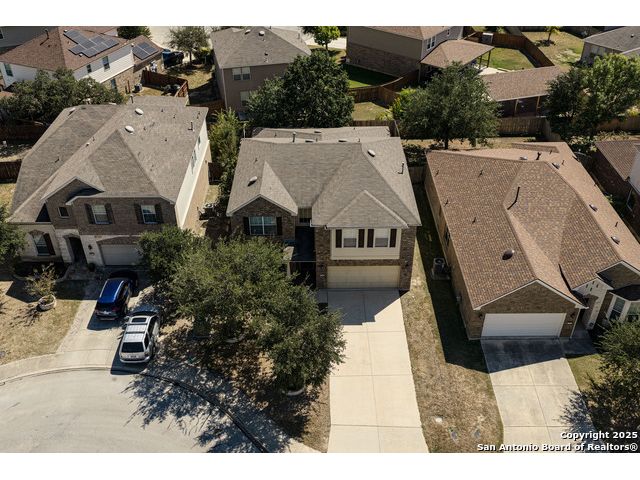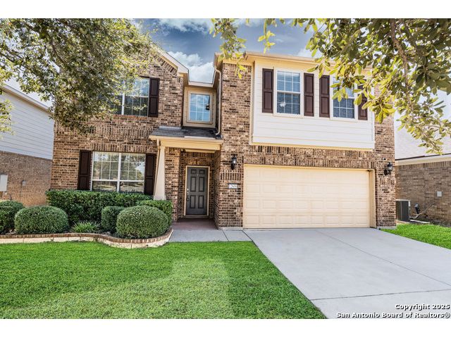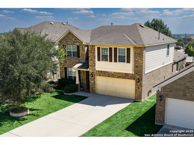 SELLER OFFERING CONCESSIONS FOR RATE BUYDOWN/CLOSING COSTS. This 2,989 sq. ft. home offers a flexible floor plan with TWO bedroom suites with full bathrooms on the first floor, making the layout ideal for multi-generational living or added comfort and privacy for visiting guests. This is a spacious 5 bed, 3 bath home in Alamo Ranch with highly rated Northside ISD schools. Enjoy an open-concept living and kitchen space with tile flooring throughout and granite countertops, a large dine-in island, stainless steel appliances, GAS cooking, a large pantry and an additional breakfast nook that opens to your beautiful outdoor patio. The primary bedroom features laminate flooring for easy maintenance and is wheelchair accessible with a large shower with a low threshold and a massive walk-in closet. Additional spaces downstairs include an office nook off the kitchen, a spacious utility room with sink and extra storage and a partially finished garage with epoxy flooring, additional storage and a water softener. Upstairs, enter a large loft space ideal as an additional living space, game room or media room. 3 additional bedrooms upstairs feature plush carpet, blinds throughout and large closets for plenty of storage. You have even more storage with a large, finished section of the attic upstairs. Outside, enjoy serene outdoor living with a large, covered patio with ceiling fans, an extended deck with built-in seating and storage with a stunning mature oak tree that provides added shade and privacy. Plus, enjoy resort-like community amenities that are only a 2-minute drive away that include a pool, clubhouse, park, playground, sports courts, and trails. The home is also only minutes from shopping and dining at Alamo Ranch Marketplace and offers quick access to Loop 1604 for easy commutes to UTSA, the Medical Center, San Antonio Airport, downtown and more. An extra perk during summer nights is that you can enjoy the Six Flags fireworks in the distance right from your own home! This one-of-a-kind floor plan with two suites downstairs won't last long so be sure to schedule your tour today.