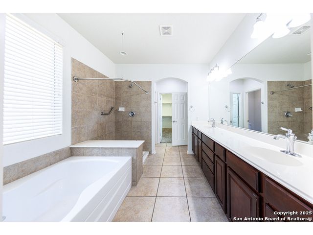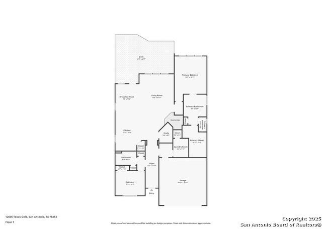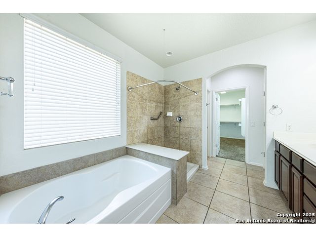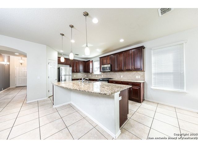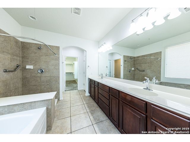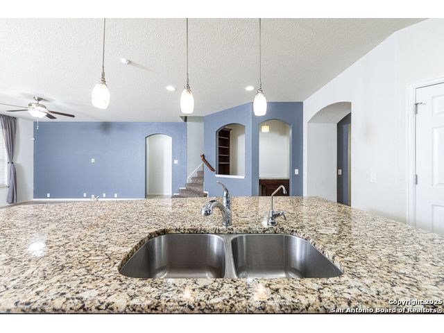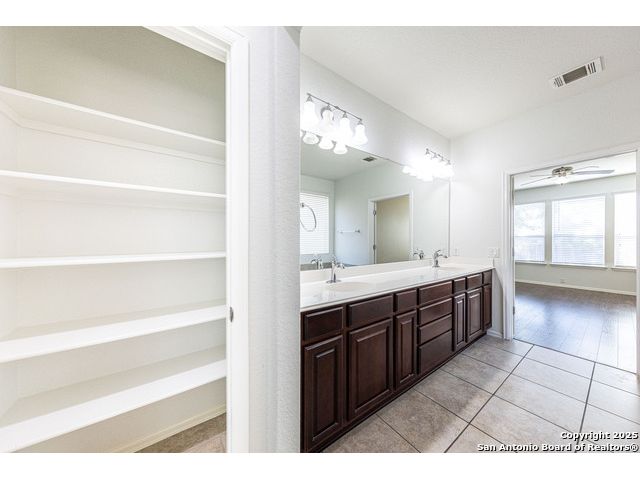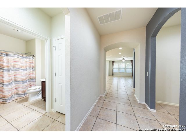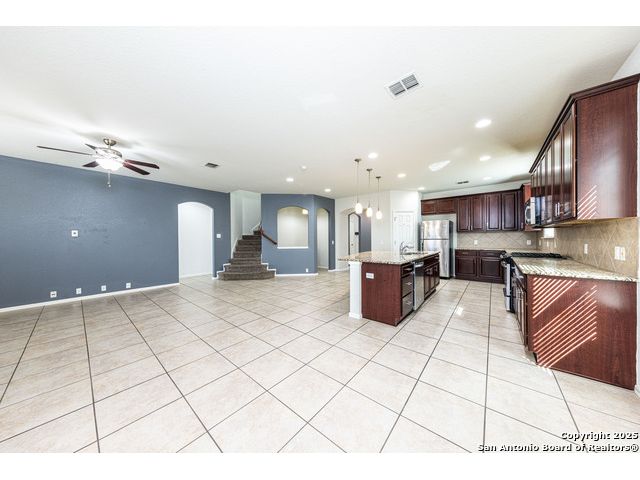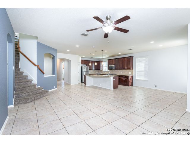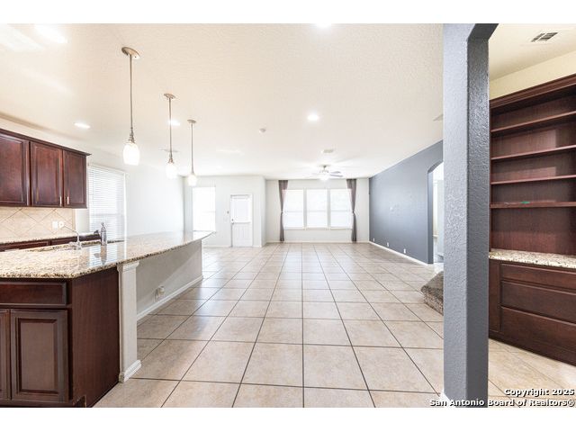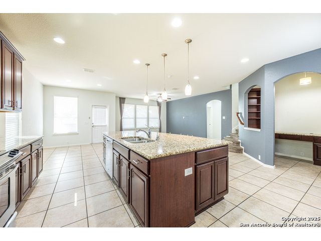 SELLER OFFERING CONCESSIONS FOR RATE BUYDOWN/CLOSING COSTS. This 2,989 sq. ft. home offers a flexible floor plan with TWO bedroom suites with full bathrooms on the first floor, making the layout ideal for multi-generational living or added comfort and privacy for visiting guests. This is a spacious 5 bed, 3 bath home in Alamo Ranch with highly rated Northside ISD schools. Enjoy an open-concept living and kitchen space with tile flooring throughout and granite countertops, a large dine-in island, stainless steel appliances, GAS cooking, a large pantry and an additional breakfast nook that opens to your beautiful outdoor patio. The primary bedroom features laminate flooring for easy maintenance and is wheelchair accessible with a large shower with a low threshold and a massive walk-in closet. Additional spaces downstairs include an office nook off the kitchen, a spacious utility room with sink and extra storage and a partially finished garage with epoxy flooring, additional storage and a water softener. Upstairs, enter a large loft space ideal as an additional living space, game room or media room. 3 additional bedrooms upstairs feature plush carpet, blinds throughout and large closets for plenty of storage. You have even more storage with a large, finished section of the attic upstairs. Outside, enjoy serene outdoor living with a large, covered patio with ceiling fans, an extended deck with built-in seating and storage with a stunning mature oak tree that provides added shade and privacy. Plus, enjoy resort-like community amenities that are only a 2-minute drive away that include a pool, clubhouse, park, playground, sports courts, and trails. The home is also only minutes from shopping and dining at Alamo Ranch Marketplace and offers quick access to Loop 1604 for easy commutes to UTSA, the Medical Center, San Antonio Airport, downtown and more. An extra perk during summer nights is that you can enjoy the Six Flags fireworks in the distance right from your own home! This one-of-a-kind floor plan with two suites downstairs won't last long so be sure to schedule your tour today.