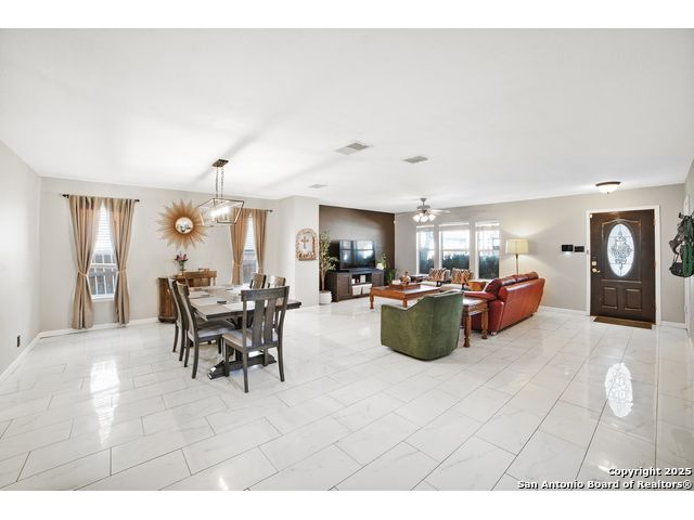 **OPEN HOUSE SATURDAY 11/1/25 2PM-5PM**Welcome to 9590 Campton Farms, a spacious 4-bedroom, 2.5-bathroom home nestled in the desirable Northwest Crossing neighborhood of San Antonio. Boasting 3,288 sq. ft. of living space on a 5,662 sq. ft. lot, this residence offers a blend of comfort and convenience. The home features multiple living areas providing ample room for relaxation and entertainment. The kitchen and bathrooms have been thoughtfully updated to meet modern standards. Two covered patios in the backyard are perfect for family gatherings and enjoying the outdoors. The expansive master bedroom includes a walk-in closet, offering plenty of storage space. Recent upgrades include a new roof cover installed in 2017, a water heater replaced in 2020, and freshly painted downstairs in 2020 and a new AC Residents of Northwest Crossing enjoy access to community pools, parks, tennis courts, and a sportsplex. The neighborhood's quiet streets are ideal for leisurely strolls and fostering a strong sense of community. The property is served by the Northside Independent School District (NISD), with nearby schools Conveniently located near major shopping centers and dining options, residents have easy access to The Shops at La Cantera, The RIM, and North Star Mall. For recreation and attractions, enjoy proximity to Six Flags Fiesta Texas, The Alamo, and the scenic San Antonio River Walk. For military personnel, the property is conveniently located near Camp Bullis, providing support and training to Joint Base San Antonio. The home also offers easy access to major highways, including Loop 1604 and I-10, making commuting throughout the city convenient. This property presents an excellent opportunity for those seeking a spacious home in a well-connected, family-friendly neighborhood. Don't miss the chance to make 9590 Campton Farms your new home!