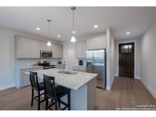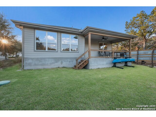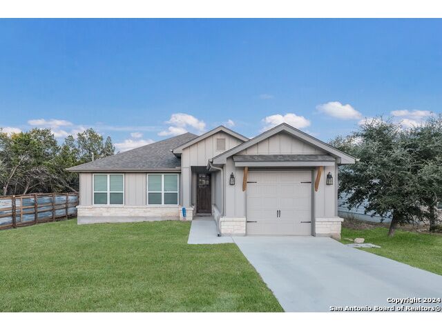 Wake up each day to breathtaking Hill Country views from your own backyard. This 5-year-old single-story home in Scenic Terrace sits along Canyon Lake with frontage on Sorrel Creek and a spacious, tree-filled lot perfect for outdoor living. Inside, an open floor plan features wood-look ceramic tile, a large kitchen island ideal for entertaining, and expansive windows that fill the home with natural light. Enjoy a covered one-car garage with storage space and a cozy back patio for relaxing in the peaceful surroundings. Just minutes from local amenities, this home offers the perfect blend of comfort, convenience, and Hill Country charm.
