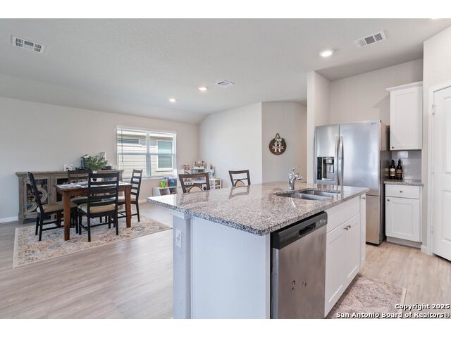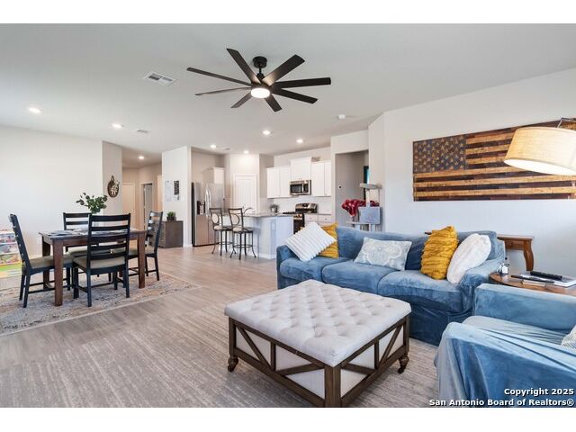 !!Assumable 2.625% VA loan!! This inviting single-story home features an open-concept design with 3 bedrooms, 2 full baths, and a versatile study that can also serve as a flex space or fourth bedroom. Guests are welcomed by a charming foyer that flows seamlessly into the spacious main living area. The centerpiece of the home is the gorgeous kitchen, complete with granite countertops, a large island, and a dining area that opens to the family room-perfect for both everyday living and entertaining. Designed with convenience and efficiency in mind, the home includes modern features such as a RING doorbell, keyless entry, a tankless water heater, garage door opener, a Rheem water softener and solar panels. With its functional layout, energy-efficient features, and stylish finishes, this home truly offers the best of comfort and practicality.