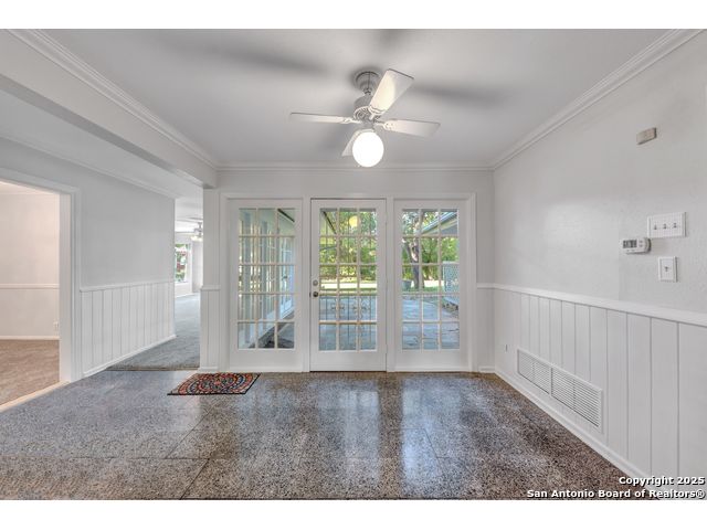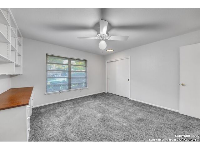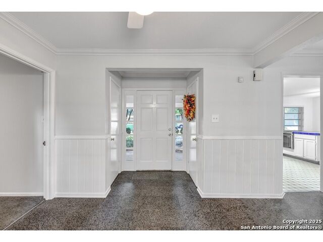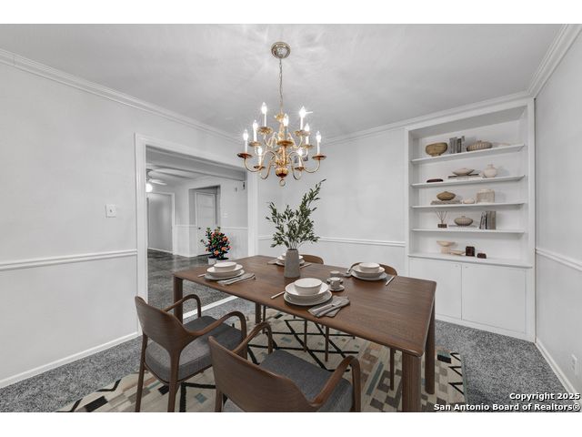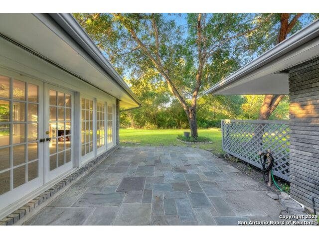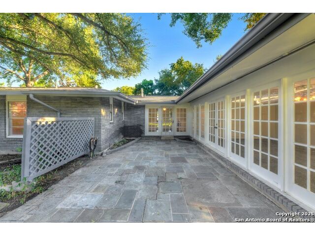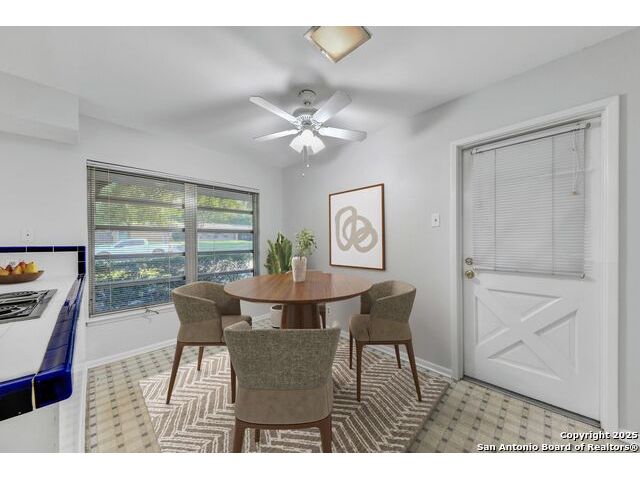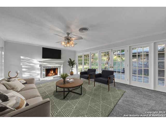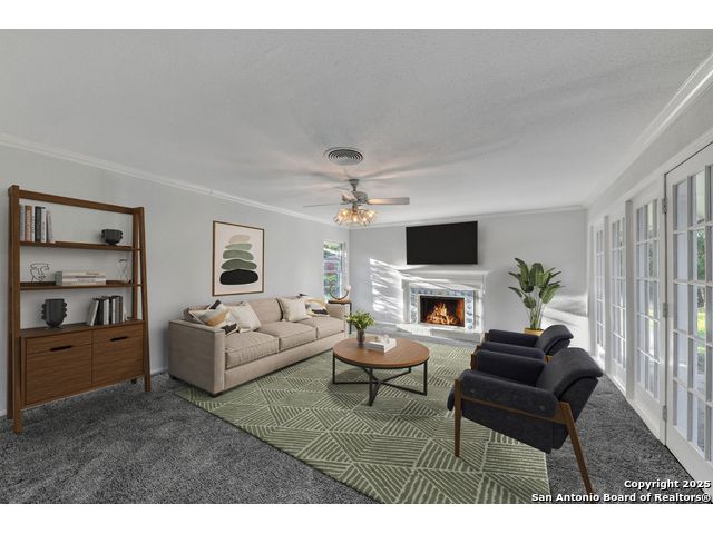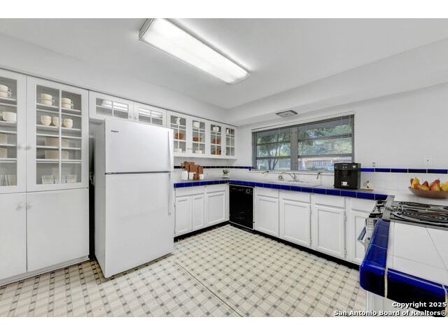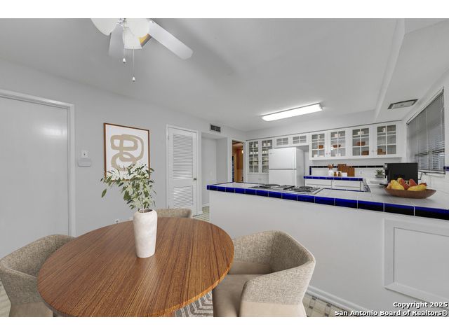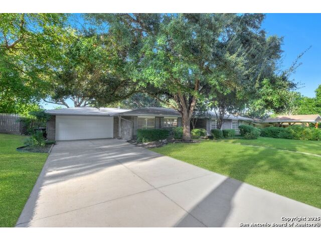 Step through the Terrazzo tile entry and discover a home where enduring character brings about an old-world charm. The family room centers around a wood-burning fireplace, its warmth extending through French doors that open to a slate-tiled patio and backyard shaded by mature trees. Pull back the carpet in the main living spaces and you'll find original hardwood floors waiting to be revealed, ready to anchor your vision for the home. The kitchen features glass-front cabinets that transform everyday dishware into display pieces, while the adjacent dining room offers built-in storage that's become increasingly rare in homes of this era. Three generous bedrooms provide actual space to move and breathe - not the cramped boxes that pass for bedrooms in newer construction. Two full bathrooms serve the household with practical efficiency. Recent mechanical updates tell the story of a home that's been maintained with care. The water heater was replaced in 2023, the roof is only 5-6 years old, and while the HVAC dates to 2004, it speaks to a time when systems were built to last. The oversized garage goes beyond basic car storage, offering built-in cabinets and extra square footage for workshop projects, seasonal items, or the kind of accumulated life that simply needs a home. Front and back sprinkler systems keep the landscaping healthy with minimal effort, and the property includes practical conveniences like a refrigerator and security system included in your purchase.