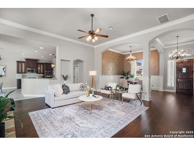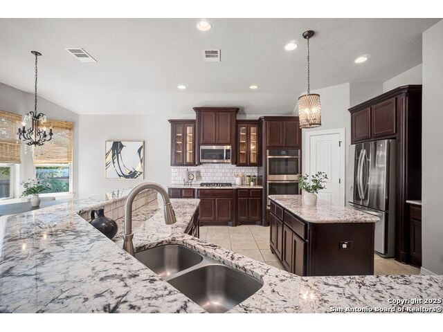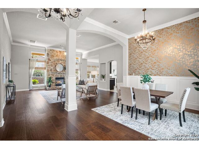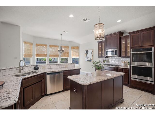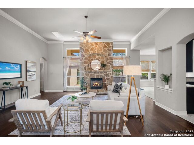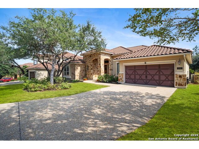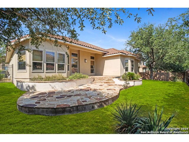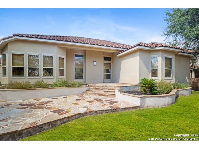 Welcome to 1242 Via Milano, a beautifully maintained home in the sought-after gated community of San Miguel. This residence offers the perfect combination of comfort, style, and convenience, all within the highly regarded North East ISD. Just minutes from Canyon Springs Golf Club, the home provides easy access to recreational opportunities in a scenic and tranquil setting. Inside, the thoughtfully designed floor plan features spacious living areas filled with natural light. High ceilings, wood flooring, and custom architectural details create a warm and inviting atmosphere. The chef's kitchen is ideal for cooking and entertaining, with gas cooking, abundant cabinetry, and a functional layout. The generous primary suite provides a peaceful retreat, complete with a spa-like bath and large walk-in closet. Enjoy the outdoors with a professionally landscaped yard and a charming flagstone patio, perfect for dining or relaxing with friends and family. The home's location is ideal for commuting and daily living, with quick access to major highways including 281, Loop 1604, and I-35. Nearby, you'll find excellent shopping, dining, and entertainment options at The Rim, Village at Stone Oak, and other popular destinations. Leading hospitals and medical centers are also just a short drive away, offering peace of mind and convenience. 1242 Via Milano combines thoughtful design with a premier location close to everything San Antonio has to offer. Schedule your private tour today and experience this exceptional home for yourself.