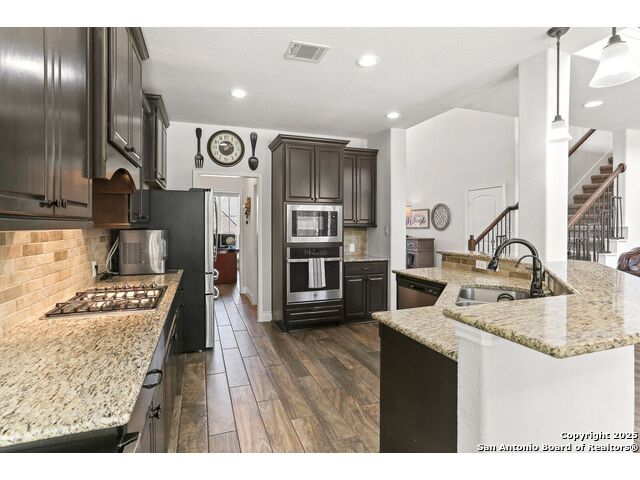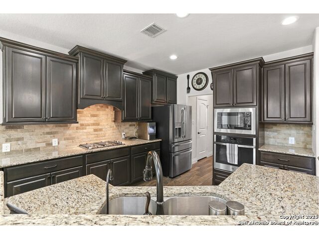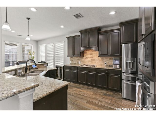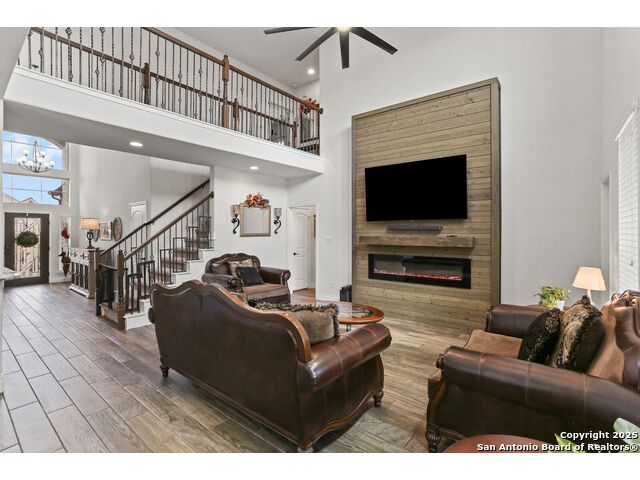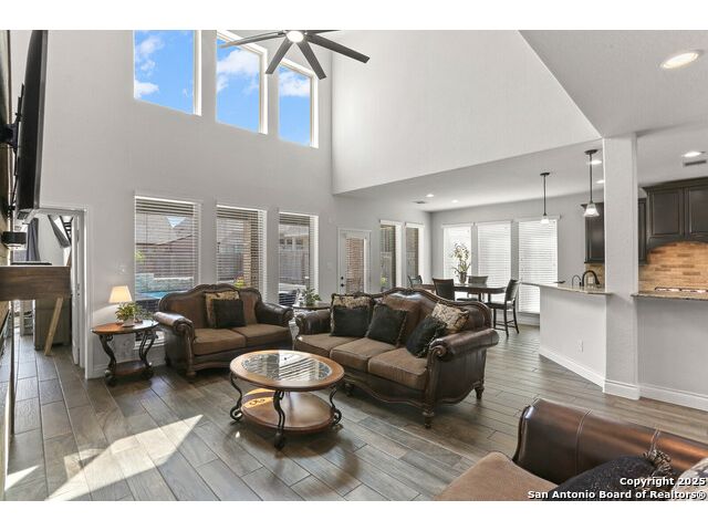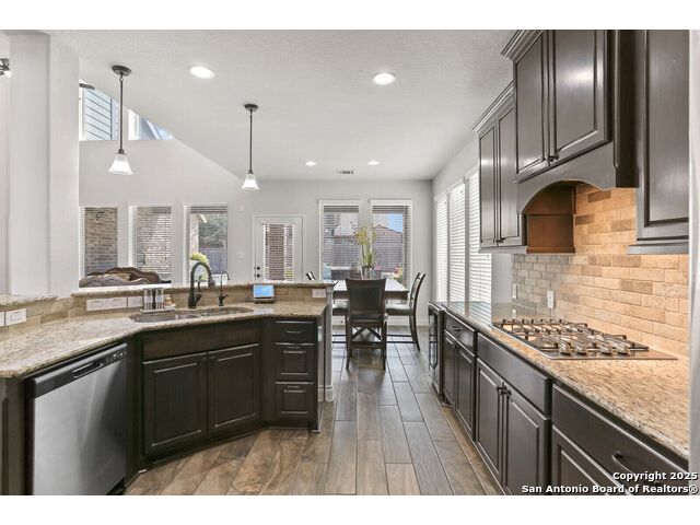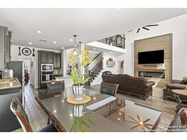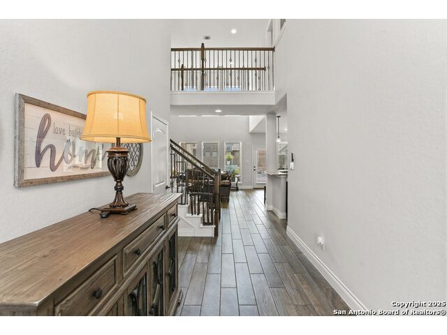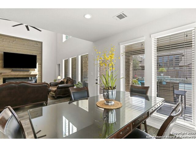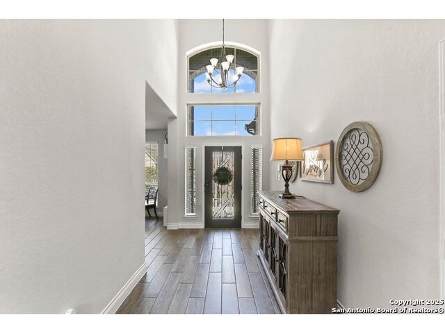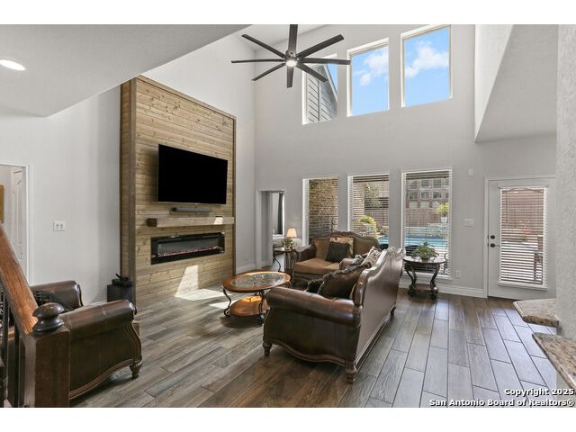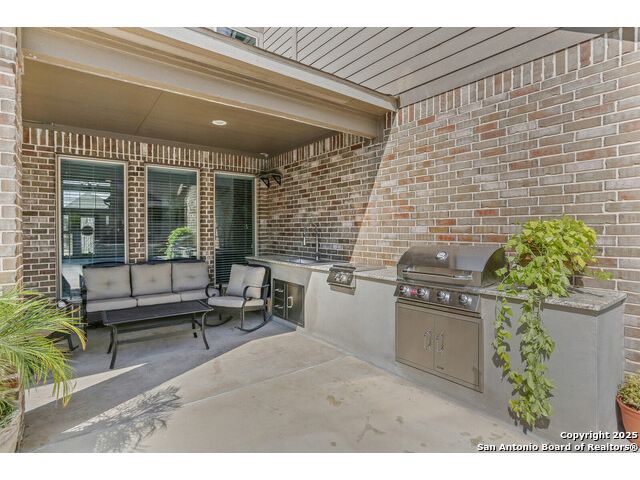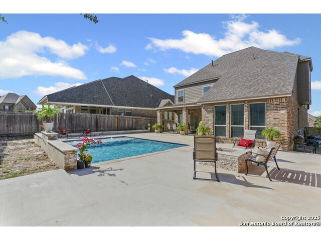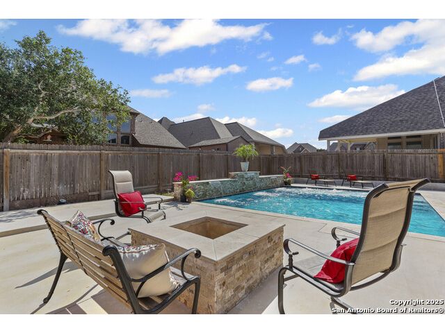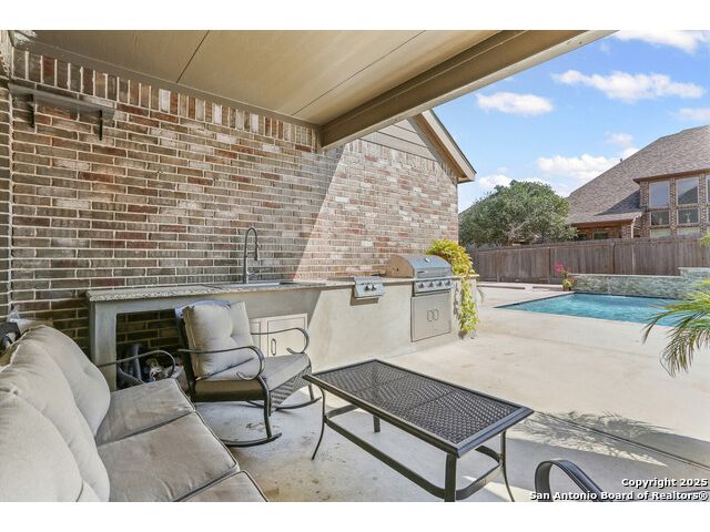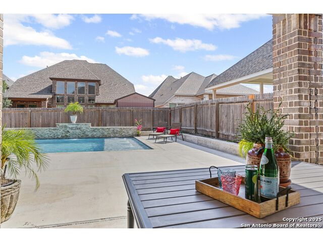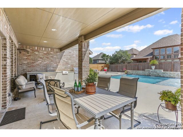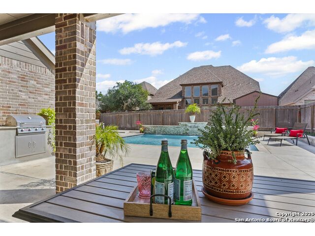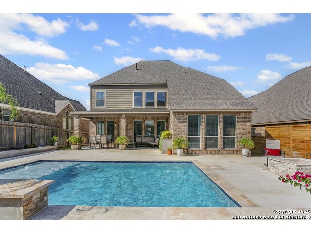 Step into elevated living with this upgraded Perry Home that blends timeless craftsmanship, modern amenities, and resort-style outdoor living. This thoughtfully designed 4-bedroom, 3.5-bath residence showcases an open-concept layout with soaring ceilings and walls of windows that invite in an abundance of natural light, creating a bright and airy atmosphere throughout. At the heart of the home, the expansive living and dining areas flow seamlessly into the gourmet kitchen, making it perfect for both relaxed evenings and lively gatherings. With its chef-inspired design, the kitchen offers ample counter space, rich cabinetry, and an inviting atmosphere where everyone feels at home. For movie lovers and entertainers, the true media room-complete with projector-sets the stage for immersive film nights, game days, or binge-worthy streaming marathons. The primary suite, privately located on the main level, offers a spacious retreat with spa-inspired features and serene views, designed to be your personal haven at the end of the day. Upstairs, generously sized secondary bedrooms provide comfort, privacy, and versatility for family, guests, or home office needs. Every detail of this Perry Home speaks to quality and thoughtful upgrades. From the brick and stone exterior to the carefully curated finishes inside, you'll find both durability and elegance throughout. Step outside and discover your private backyard paradise-designed for both relaxation and unforgettable entertaining. The sparkling in-ground pool with cascading water sheers, tanning ledge with bubblers, and dramatic nighttime ambiance lighting transforms every evening into a resort-like experience. A full summer kitchen extends your living space outdoors, ideal for grilling, dining, and hosting under the stars. The patio is already plumbed for a convenient outdoor bath and shower, as well as additional storage-perfect for keeping the pool lifestyle effortless and organized. Set within a highly sought-after community known for its award-winning schools, this home also delivers exceptional everyday value with no city taxes. It's a rare combination of refined interiors, extraordinary outdoor living, and long-term financial benefits. Whether you're seeking the perfect entertaining home, or a retreat where every day feels like a vacation, this upgraded Perry Home offers it all. With its prime location, smart design, and resort-style amenities, this residence is not just a home-it's a lifestyle.