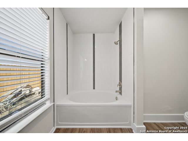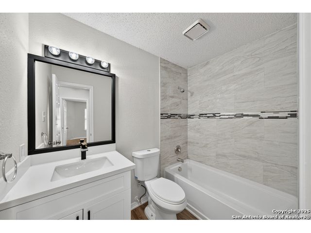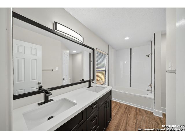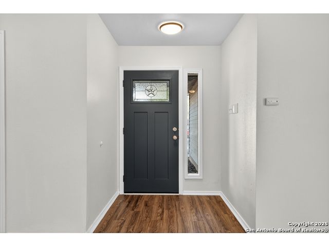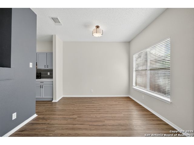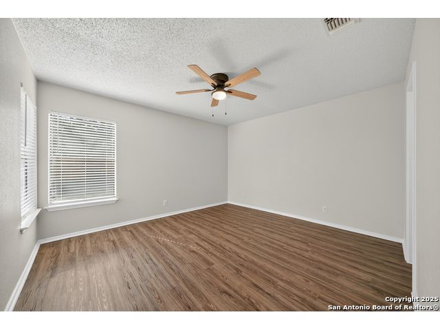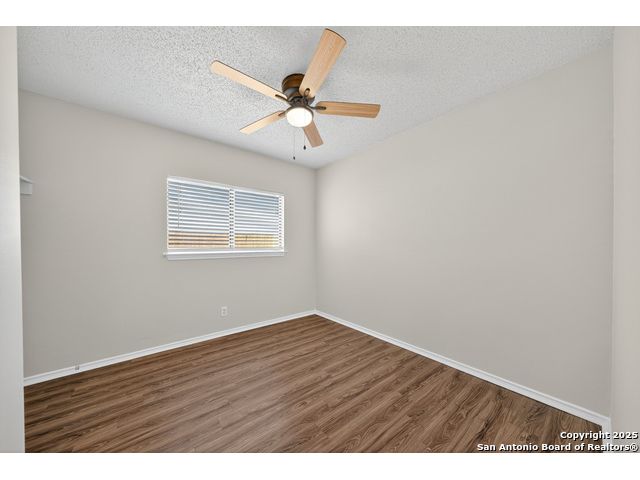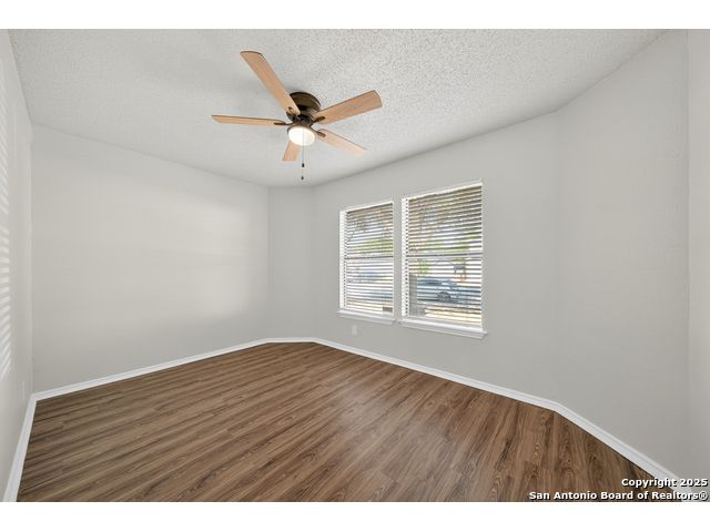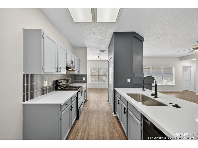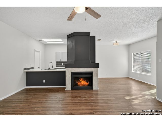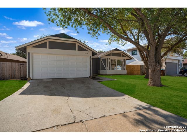 This is the home you've been searching for! Remodeled and move-in ready, this stunning single-story home offers 3 spacious bedrooms, 2 full baths, and a bright, modern interior. Inside, a wall of windows across the back fill the open living area with natural light, complemented by beautiful finishes like new luxury vinyl plank flooring (no carpet!), and neutral paint. The stylish kitchen opens to the spacious family room with a wood-burning fireplace and sliding glass doors to the backyard, and includes quartz countertops with custom backsplash, black appliances, grey cabinetry, and a breakfast bar. Both bathrooms have been tastefully updated with quartz counters, new vanity cabinets, under-mount sinks, framed mirrors, custom tile surrounds, and new fixtures. Outside, enjoy a spacious backyard with new privacy fence and covered patio, plus mature trees in the front and back, offering shade and curb appeal. The roof was replaced just 7 years ago, and the water heater is new, offering peace of mind and added value for years to come. This home is located in a well-maintained, walkable neighborhood just blocks from Spring Meadow Elementary and Ventura Community Pool. With nearby shopping, restaurants, and coffee shops-and only about 12 miles from downtown San Antonio-this one checks all the boxes!