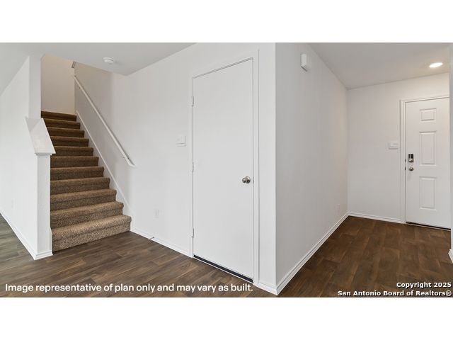 Welcome to The Davis, a two-story home located at Laurel Vistas in San Antonio, TX. This floor plan offers 2 classic exteriors and 2-car garage. Inside this 3 bedroom, 2.5 bathroom home, you'll find 1489 square feet of living space. The entry opens to a gourmet kitchen before flowing into the dining and family room with an open floorplan concept. The kitchen includes quartz counter tops, quality cabinetry, stainless steel appliances, large breakfast island, and pantry. Head up the stairs to find the main bedroom suite, all secondary bedrooms, the laundry room, and a full bath. The Davis layout is perfect if you love entertaining downstairs and relaxing upstairs. The private main bedroom features an attractive ensuite with quality cabinetry. A spacious tiled walk-in shower and large walk-in closet provide all the space and convenience you need. Additional features of The Davis floor plan include sheet vinyl flooring in entry, living room, and all wet areas, quartz counter tops in all bathrooms and HOME IS CONNECTED base package. Using one central hub that talks to all the devices in your home, you can control the lights, thermostat and locks, all from your cellular device.