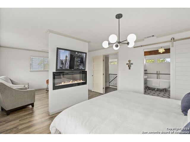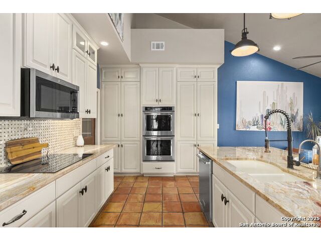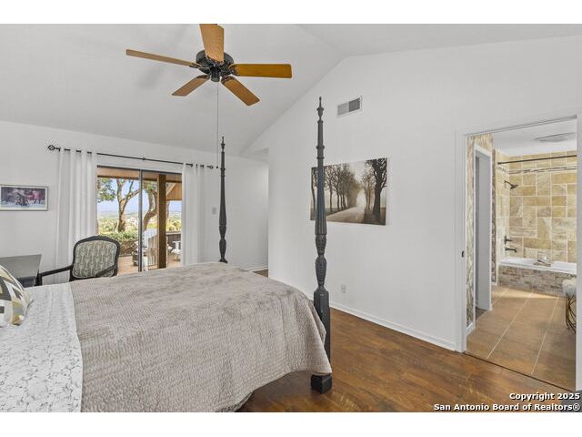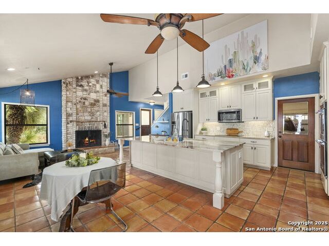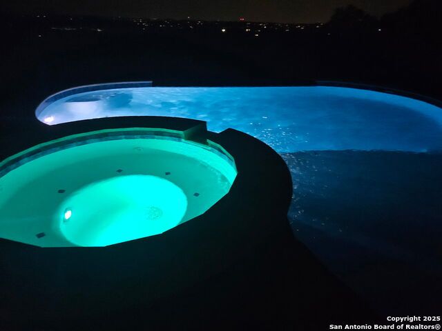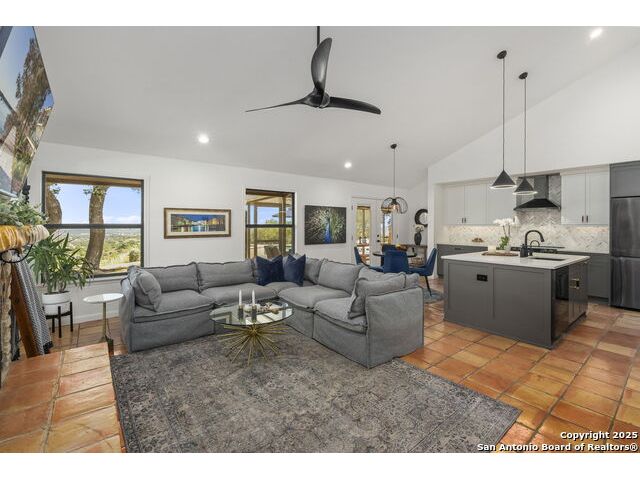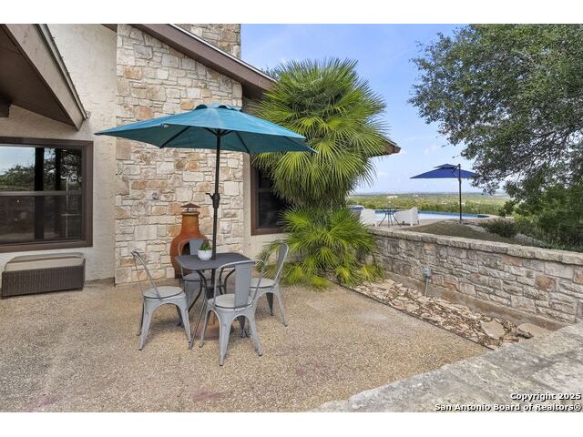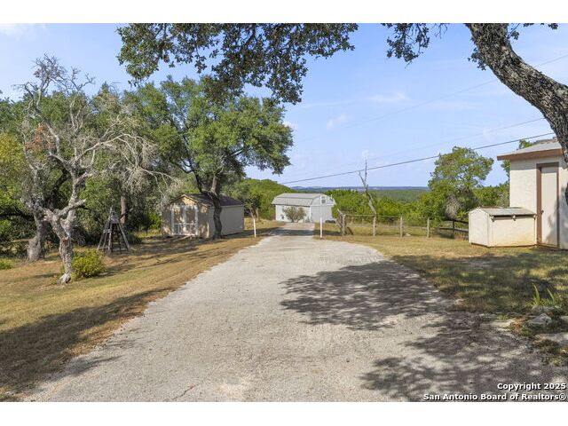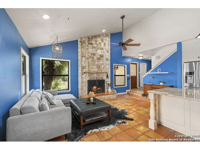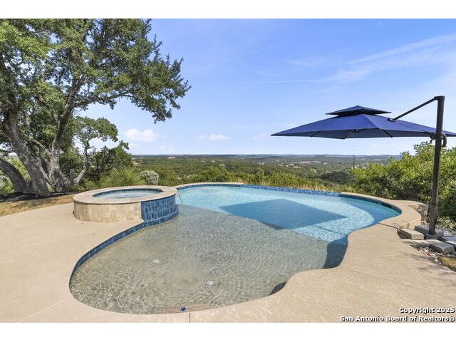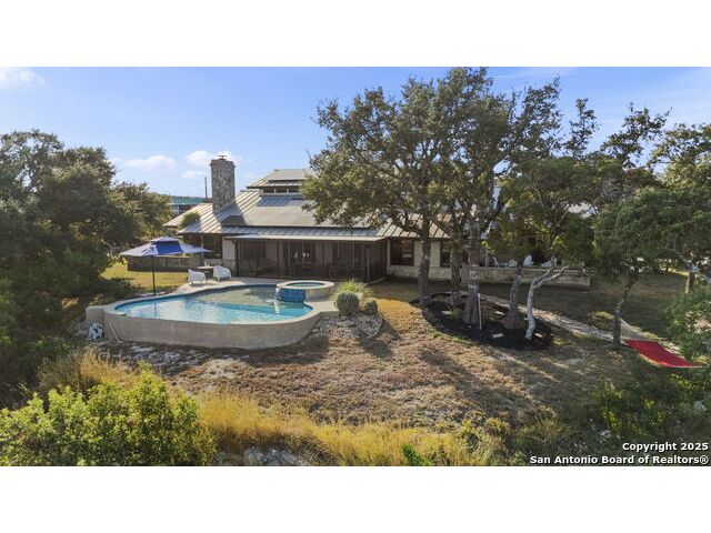 HILL COUNTRY RETREAT WITH PANORAMIC VIEWS, DUAL LIVING SPACES AND TINY HOME -- Perched on a private hilltop with absolutely breathtaking panoramic views, this 3,519 sq. ft. newly renovated stone and stucco duplex offers the perfect blend of privacy, versatility, and timeless Hill Country charm. Situated on 4.95 acres, this one-of-a-kind property is ideal for multigenerational living, guest accommodations, or income potential with two fully independent residences under one roof. UNIT A features two master suites, 2.5 baths, and a private 225 sq. ft. outdoor terrace. UNIT B offers one master suite, two additional bedrooms, 2.5 baths, and its own 225 sq. ft. outdoor terrace. Both residences welcome you with Saltillo-tiled entries that open into expansive living and dining areas, each anchored by a dramatic floor-to-ceiling rock fireplace. At the heart of each home lies a beautifully updated kitchen with custom soft-close cabinetry, high end countertops, designer lighting, and high-end finishes-perfect for everyday living or entertaining in style. Spacious master suites on both sides provide updated spa-inspired baths, private laundry closets, and direct access to sweeping Hill Country views. A screened-in 250 sq. ft. porch connects the two units and overlooks a sparkling pool and hot tub, creating a shared oasis for relaxation, fun, and entertaining. Enjoy quiet mornings, vibrant sunsets, abundant wildlife, and even Fiesta fireworks from the privacy of your own hilltop retreat. Energy efficiency comes built-in with a durable metal roof and 86 ION solar panels (installed in 2019). Adding even more versatility, a fully functional tiny home sits on the property-perfect for guests, extended family, a private office, or an income opportunity. Tucked away at the end of a private road, this residence provides the serenity of country living while being just 15 minutes from Downtown Boerne and Leon Springs, and only 20-30 minutes from San Antonio's modern conveniences. Whether you're gathering family under one roof, welcoming guests, or simply seeking a private Hill Country escape, this retreat offers a rare opportunity to experience Texas living at its finest. Award-winning Boerne School District, voluntary HOA fee of $400 for garbage, and NO city taxes!