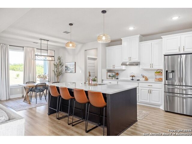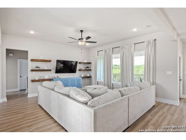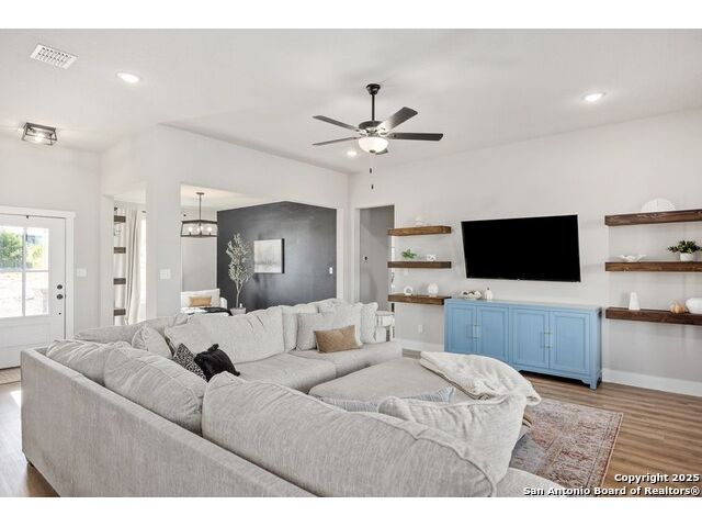 Welcome to your new home in Tierra Linda Ranches, built in 2024 by Tilson Homes. This spacious, open-concept design features large windows, generous closets, and a bright, clean feel that still feels brand new. The kitchen is a showpiece with an oversized island overlooking the great room, ample counter space for cooking, a cozy coffee nook, and an adjoining area currently used as a sitting room that could also serve as a formal dining space. Beautiful custom floating shelves in the great room, sitting room, and kitchen add warmth and character.. The main level offers three bedrooms, two baths, and a small office, while the upper level includes a fourth bedroom with a full bath that can also serve as a game room, media room, or second living space. Situated on 6.37 acres at the end of a quiet cul-de-sac, the property provides rolling Hill Country views and a private fenced yard with exterior access, ideal for pets. Tierra Linda Ranches is a 3,000-acre working ranch community offering AG Exemption for lower taxes and amenities such as a swimming pool, tennis/ pickleball courts, a private airport & Volunteer Fire Dept, horse riding & stables, clubhouse, & rivers/ ponds for fishing!
