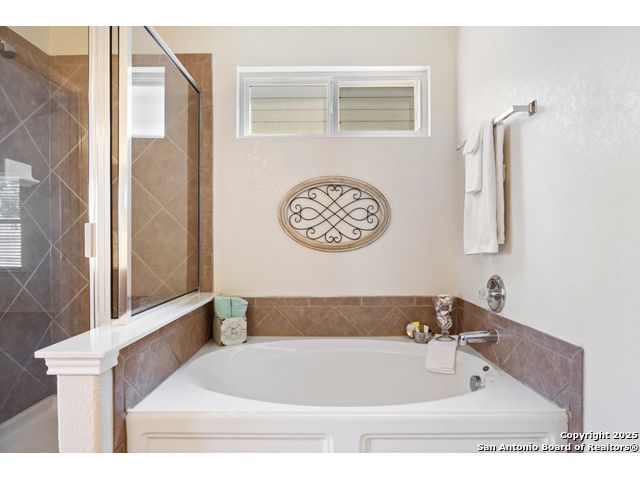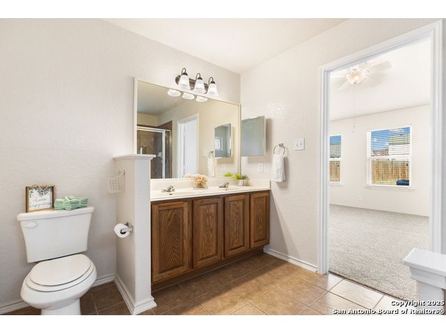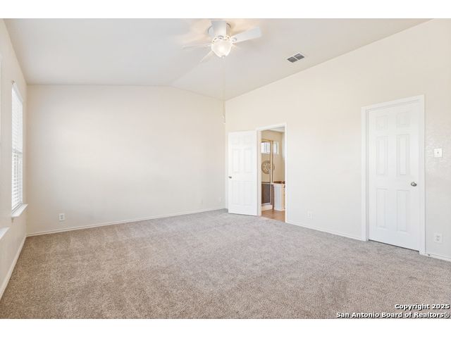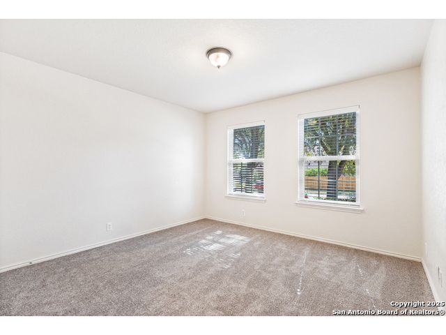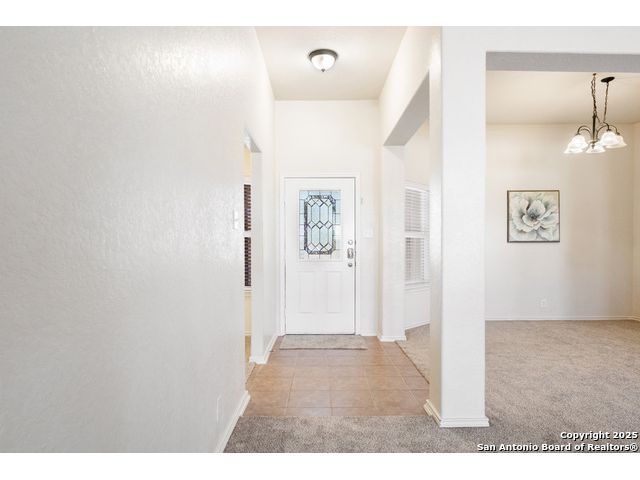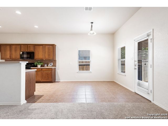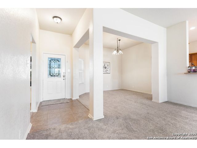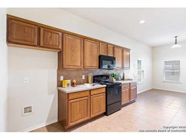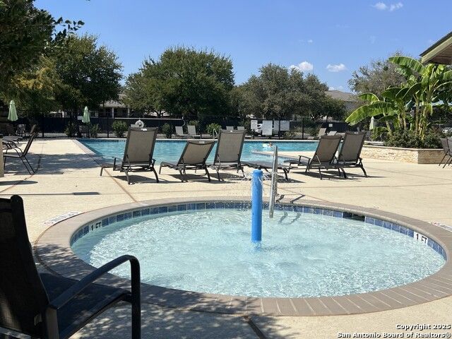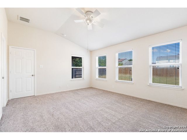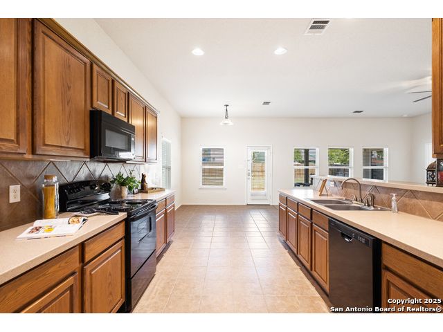 Welcome to this beautifully maintained Ryland-built home located in the sought-after Bentwood Ranch community. Situated on a level lot with no steps, this 3-bedroom, 2-bathroom residence features an open-concept layout and elevated ceilings throughout, offering both comfort and style. The spacious living area is ideal for entertaining and flows seamlessly into two dining spaces-breakfast and formal (or use for a study/2nd living space) - adjacent to a galley-style kitchen. The kitchen is equipped with all new appliances (oven, dishwasher & microwave Sept. 2025), 42" cabinets, recessed lighting and Corian countertops. The private primary suite is filled with natural light from four large windows and features high ceilings, a walk-in closet, dual sinks, and both a shower and garden tub. Two additional bedrooms and a full bath with a tub/shower combo are located at the front of the home-perfect for guests or family members. In the spacious backyard, you'll appreciate the large covered patio with 2 ceiling fans. Additional highlights include: Fresh interior paint and deep cleaning throughout, recent roof 2023, new carpet installed Sept. 2025, multiple ceiling fans, large pantry space, exterior gutters, convenient concrete sidewalk on side of home, xeriscaped front yard for easy yard maintenance, an easement separating homes from behind & partial fence replacement 2023. Located in the highly rated SCUCISD school district. Community amenities include a pool, sport courts, park, and playground.