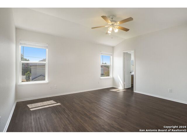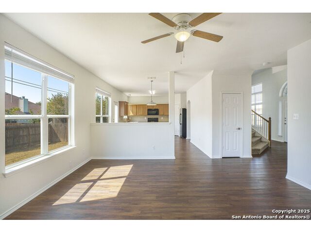 Welcome to this beautiful 4-bedroom, 2.5-bathroom home with a 2-car garage, located in the sought-after neighborhood of Mission Del Lago. Step into a stunning entrance with cathedral ceilings and direct access to the formal dining room. The kitchen and living area feature an open-concept design, with a wood-burning fireplace serving as a perfect focal point for entertaining. The fenced-in backyard is a great additional hangout space with plenty of room for grilling. All bedrooms are thoughtfully located on the second floor for added privacy. At the top of the stairs, a versatile flex space is perfect for a secondary living area or media room. The home offers a highly convenient location, with a quick drive to Downtown, Brooks City Base, and all major highways, making commuting a breeze. The neighborhood itself boasts a variety of amenities, including running trails, a golf course, and a pool. Schedule your showing today!