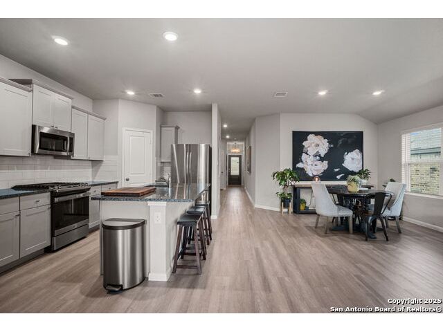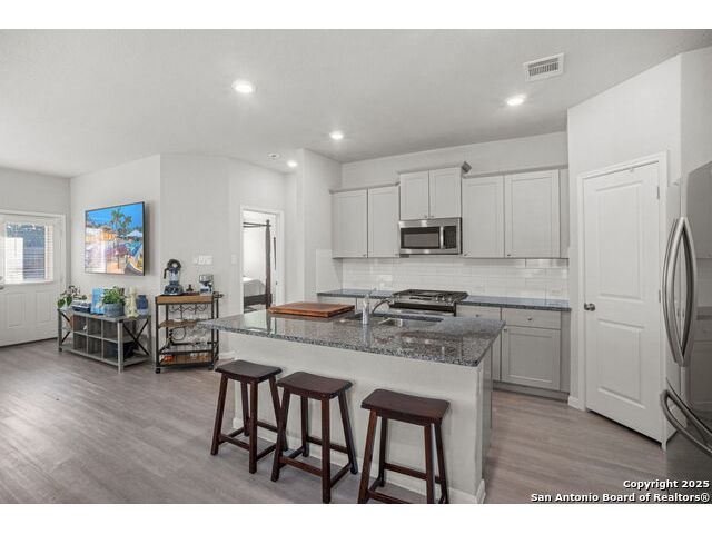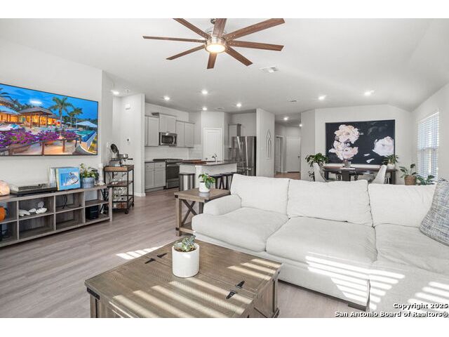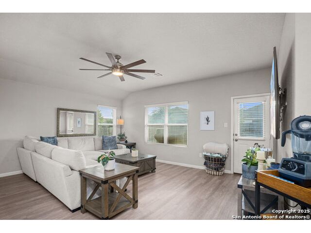OPEN HOUSE SATURDAY, DEC 6TH FROM 11AM - 1PM. $5000 in Closing Cost Assistance. In the gated community of Potranco Run, this beautifully maintained single-story home offers 3 bedrooms, 2 bathrooms, and nearly 2,000 sq. ft. of thoughtfully designed living space. The open floor plan seamlessly connects the kitchen, dining, and living areas, creating an inviting layout ideal for entertaining or everyday comfort. Natural light fills each room, highlighting the warm and welcoming atmosphere throughout. The spacious kitchen offers plenty of cabinetry and prep space, while the bedrooms provide comfort and privacy for all. Outside your door, enjoy resort-style amenities including a sparkling pool, park, volleyball court, and clubhouse, ensuring there's always something to enjoy close to home. Built just five years ago and move-in ready, this property combines modern convenience with community living, making it a perfect place to come home to.
