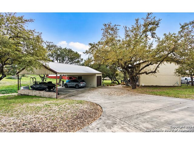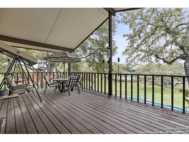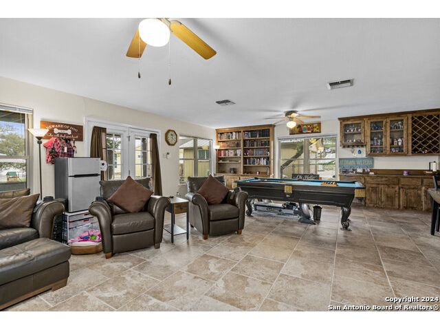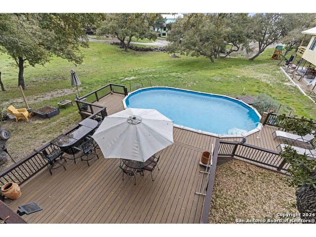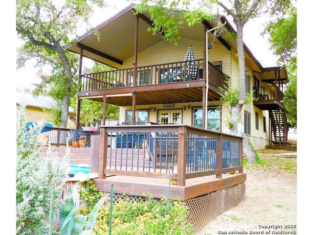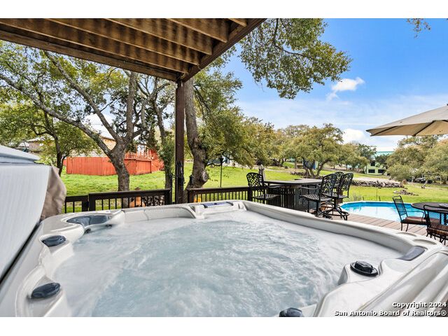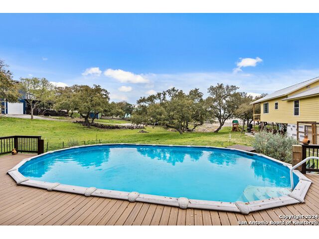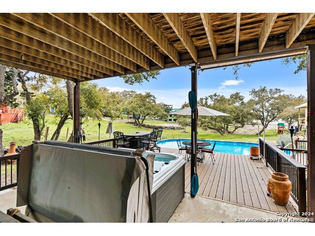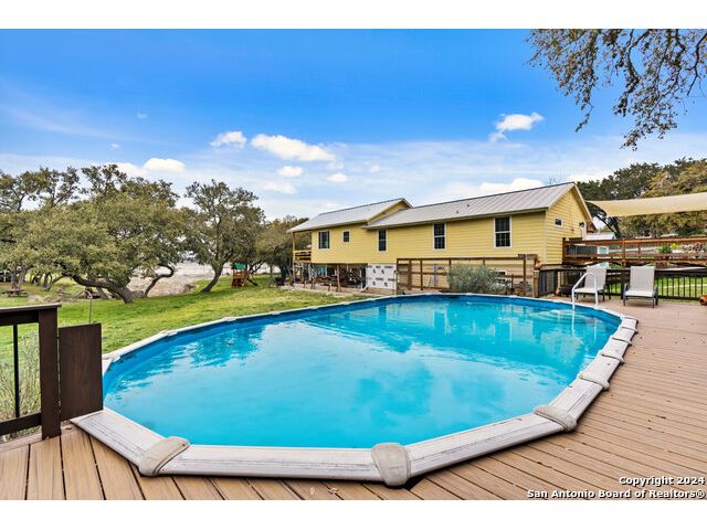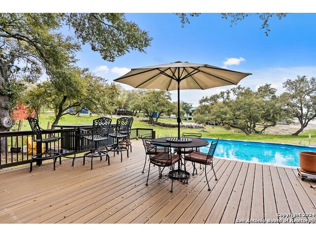 Experience the tranquility of waterfront living in this spacious home set on two lots. Offering 4 bedrooms, 3 baths, and nearly 3,900 sq. ft., it combines comfort with luxury. The kitchen is a chef's delight, featuring granite countertops, a gas cooktop, double ovens, a wine fridge, and abundant cabinetry. Storage is plentiful throughout the home. The expansive game room is ideal for entertaining, complete with a pool table, wet bar, and fireplace. Outdoor living shines with multiple decks that flow to the pool and hot tub, while a gentle path leads directly to the waterfront. A circular driveway, low-maintenance landscaping, oversized carport, and garage add convenience to this exceptional property. NEW SEPTIC SYSTEM IN 2025.