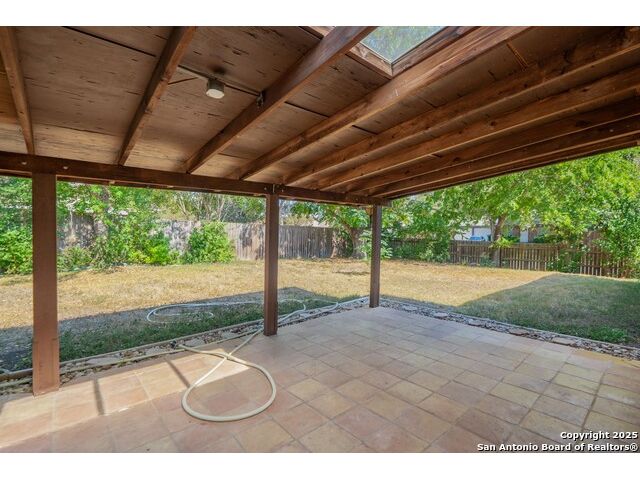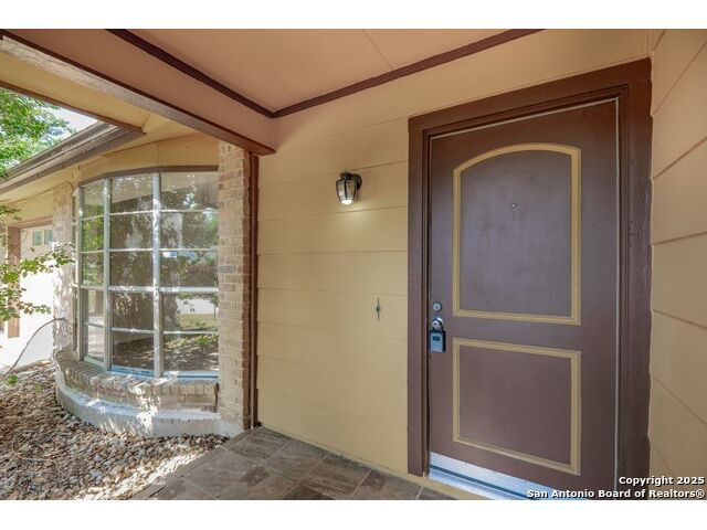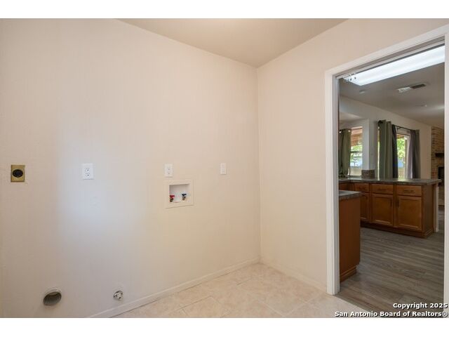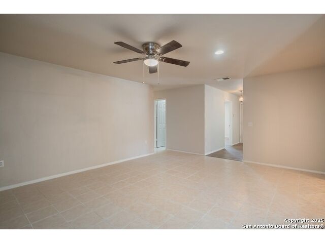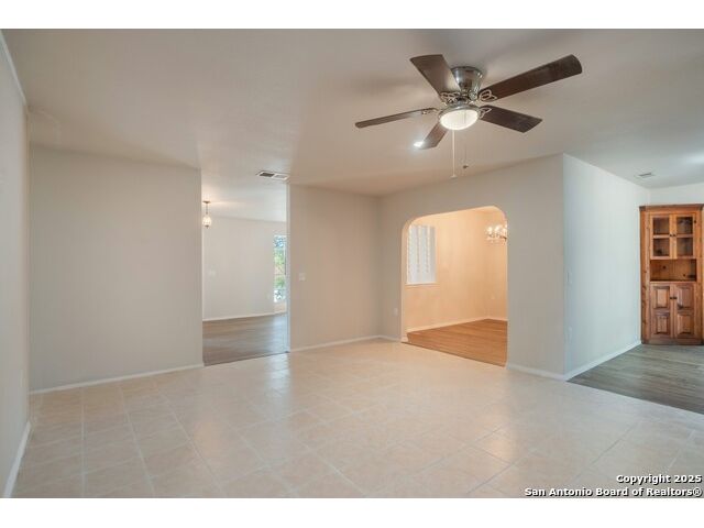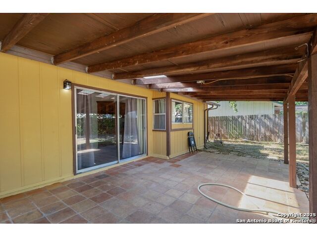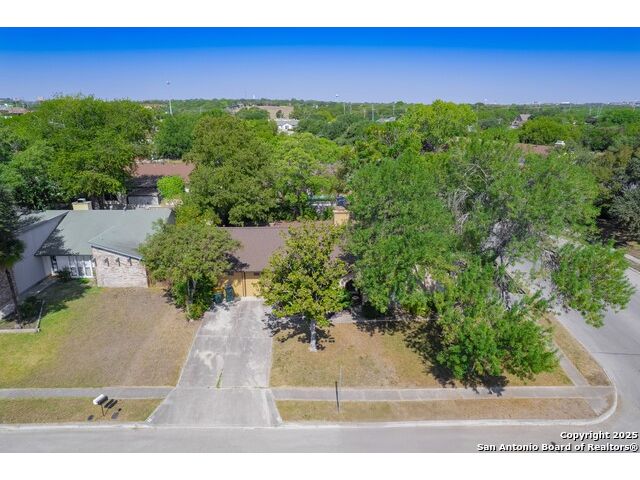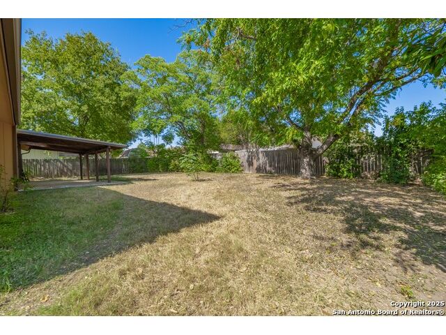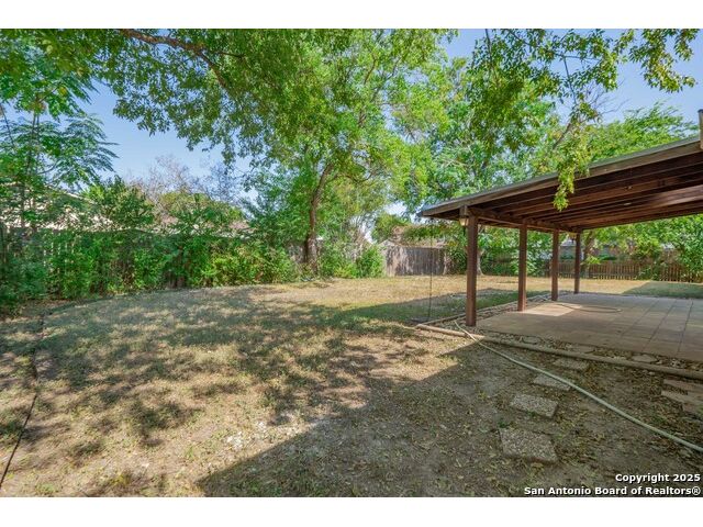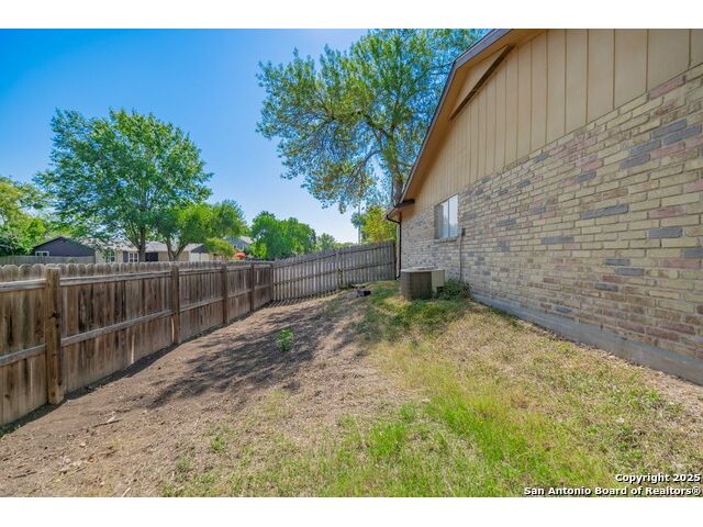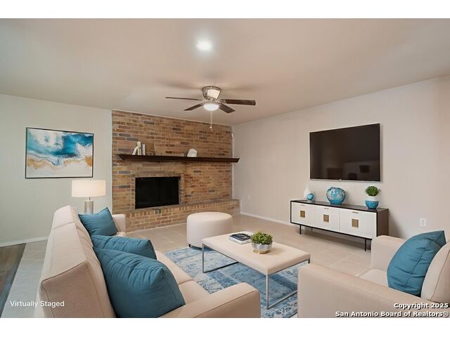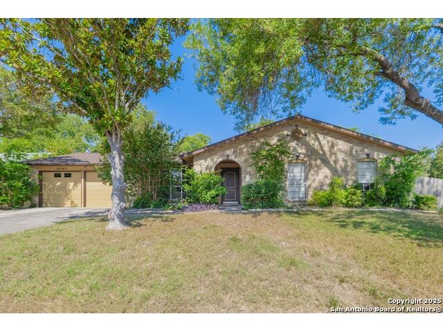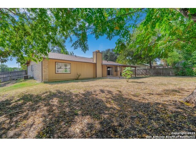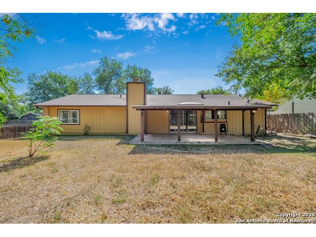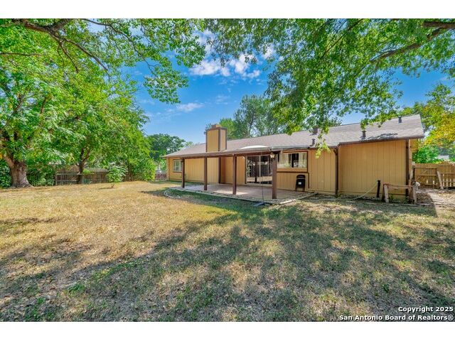 Welcome to this vacant 4-bedroom, 2-bath home offering 1,694 sq. ft. of living space in the desirable Cimarron subdivision. Set on a spacious 0.24-acre corner lot, this single-story home combines comfort, function, and convenience. The thoughtful floor plan is designed for flexibility. The foyer opens to a family room, while the living room serves as the heart of the home with a cozy brick fireplace. The kitchen includes an eat-in breakfast nook that seamlessly connects to the living room and provides direct access to the backyard for easy indoor-outdoor gatherings. The laundry room is conveniently located off the kitchen and accessible through the attached 2-car garage. The private primary suite is tucked away at the rear of the home and offers an ensuite bath with a shower/tub combo, single vanity, and walk-in closet. Three secondary bedrooms share a full bath, making the layout ideal for family, guests, or a home office. Outdoors, enjoy a covered patio, privacy-fenced backyard, mature trees, and plenty of space for relaxation or entertaining. Highlights include a roof repaired two years ago with a transferable warranty and a transferable foundation warranty. The home is also being sold AS-IS. Located just minutes from Loop 1604, I-35, Randolph AFB, schools, parks, shopping, and dining, this property blends suburban comfort with easy access to everything San Antonio has to offer.