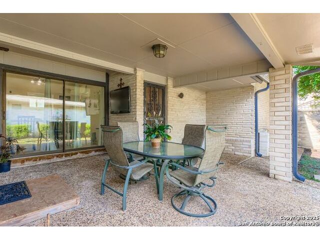 Welcome to this beautifully updated 3-bedroom, 2-bath townhouse located in the highly desirable community of Whispering Oaks. This home features an open floor plan with high ceilings, a spacious family room, and a large dining area, perfect for comfortable living and entertaining. The kitchen and breakfast nook combine style and functionality, featuring newly installed granite countertops, freshly painted cabinets, and a custom-made movable island that adds versatility and extra workspace. The generously sized primary suite offers comfort and privacy, complete with a massive walk-in closet and a fully updated bathroom. The home features ceramic tile throughout, with carpet only in the primary bedroom and one of the secondary bedrooms offering both easy maintenance and comfort where it counts. Step outside to a private backyard ideal for intimate gatherings, complete with a covered patio and enclosed by a high brick wall for added privacy. Additional recent upgrades include new windows, a new front door, updated bathrooms, a new water heater and HVAC system, full interior repaint, and solar panels for improved energy efficiency. Residents have the option to join the neighborhood swim and tennis club through the voluntary HOA. Conveniently located near the Alon shopping center, Hardberger Park, and the Medical Center, this home offers the perfect blend of comfort, convenience, and community. Schedule your showing today!