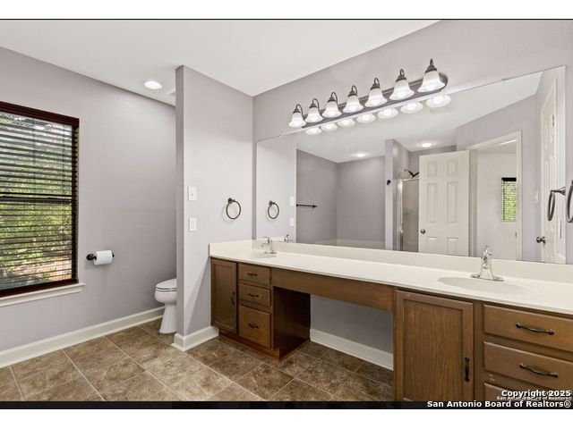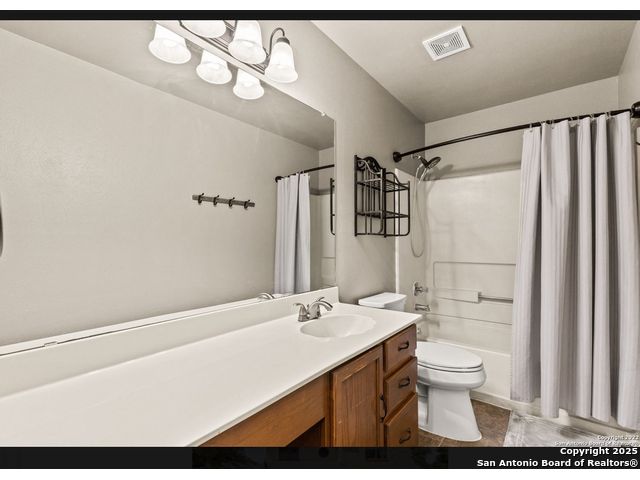 One of a kind home in Ashley Place on a cul de sac with an oversized lot that features 3 LARGE bedrooms, 2.5 baths, downstairs has an open floor plan with plenty of space in the living and dinning room, island kitchen with custom cabinets, huge walk in pantry/laundry room, upstairs has a second living room, huge master suite with sitting area that could be used for your home office, enjoy the backyard with an amazing deck/porch with mature tress. Great location within minutes to I-35, schools, and Randolph AFB.