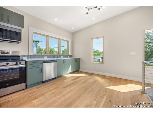Brand new architecturally-driven single family home in Denver Heights, only a few blocks from downtown. Contemporary zero-lot-line home by award-winning, local project team nearing completion just southeast of downtown. No condo association, no HOA, and no recurring fees- fee simple ownership opportunity. Contemporary design, construction, and detailing throughout. Commercial- grade carport below with private balcony above, sweeping neighborhood views, and small enclosed back yard. Solar and EV charger ready. Easy to ride a bicycle to many metro-area attractions: Hemisfair, Southtown, Alamodome, and future Project Marvel + new Spurs arena.