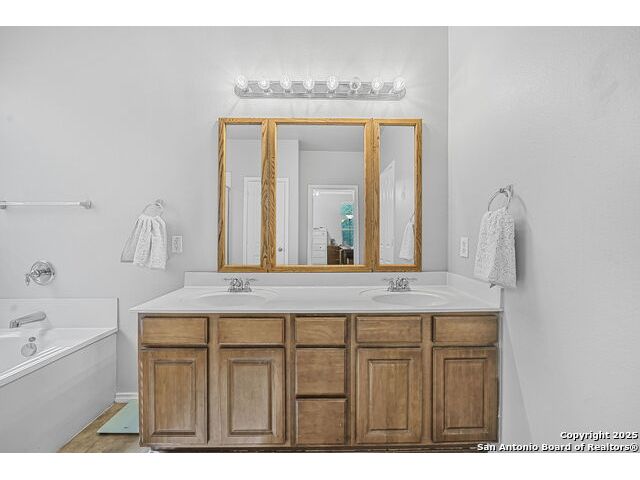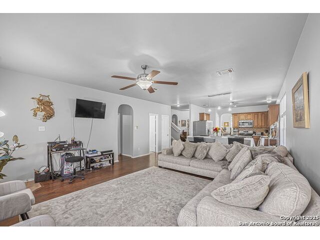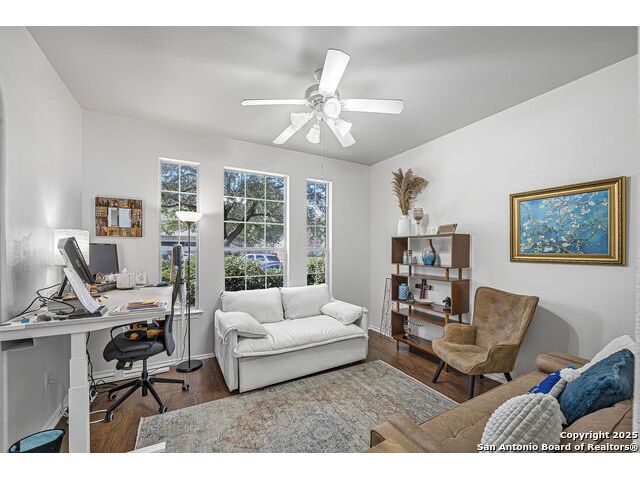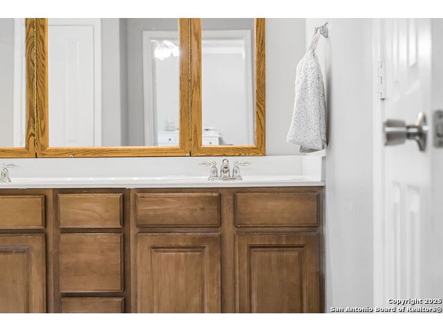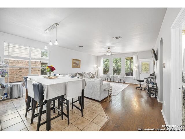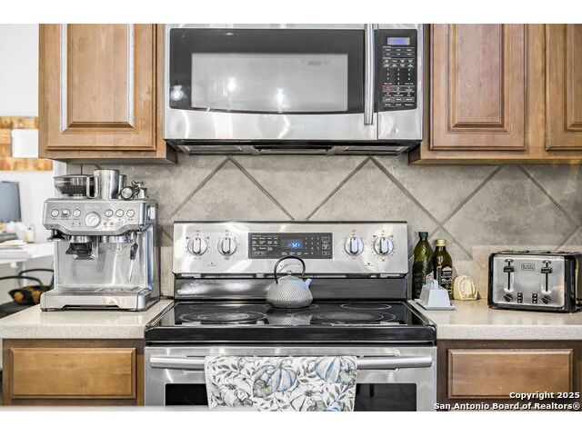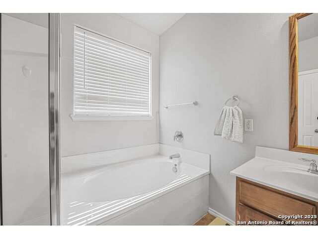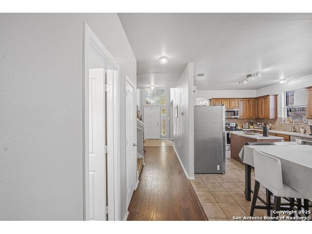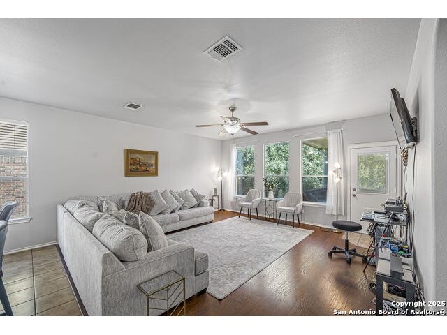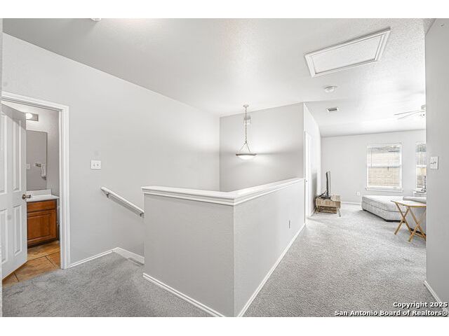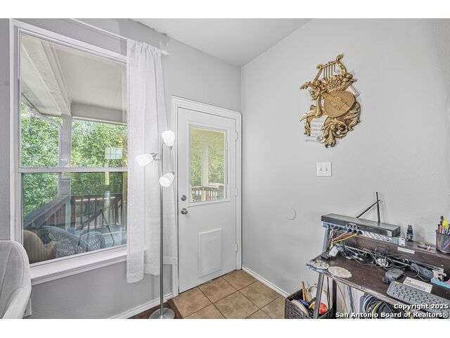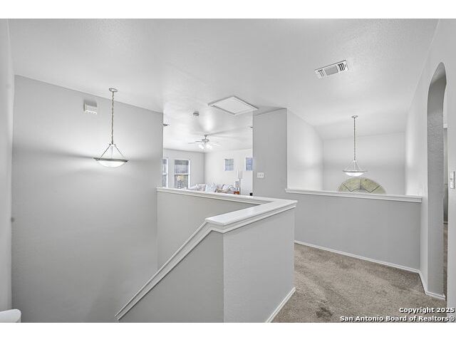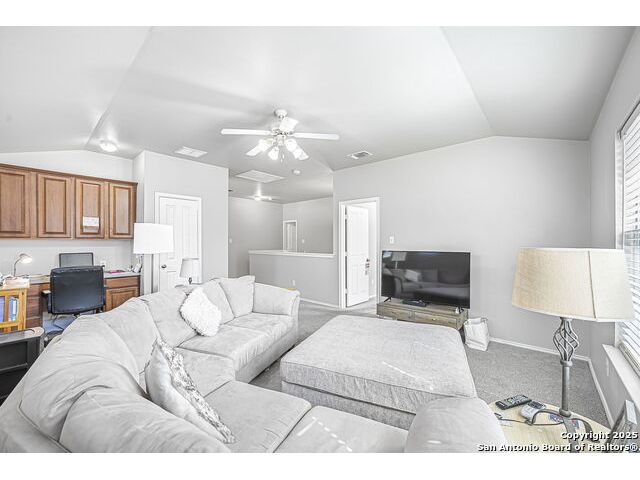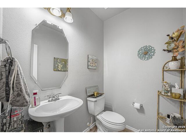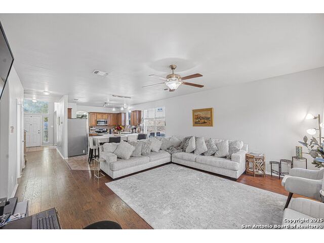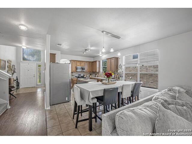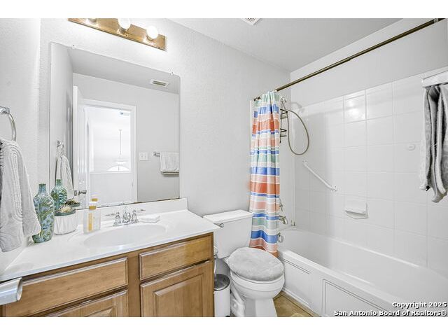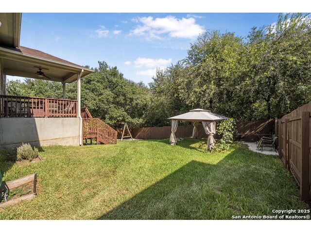 A LOW 3% VA ASSUMABLE RATE is available for qualified buyers! Welcome to this beautifully updated 4-bed, 2.5-bath home in highly sought-after Westcreek. Nestled on a peaceful street with serene greenbelt views, this home offers a rare sense of privacy-neighbors often say it feels like country living within the city. Recent updates include a new roof, water heater, interior paint, and refreshed fencing. Inside, the flexible layout features a spacious main living area plus an upstairs game room with built-in cabinetry-perfect for work or play. Step outside to your backyard retreat with a covered patio, fire pit, swing set, and flat yard atop the hill with a canopy gathering area-ideal for entertaining or unwinding under the stars. A sprinkler system keeps the lush yard easy to maintain. All appliances convey, including a Samsung refrigerator, stainless kitchen suite, smart washer/dryer, patio fire table, and outdoor canopy. Furniture may also remain (with minor exclusions). Conveniently located near Lackland AFB, Microsoft, and Military Dr, offering quick routes that help you bypass Potranco traffic. Schedule your private tour today and experience the charm of Westcreek living!