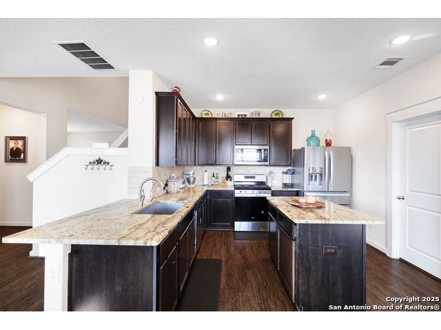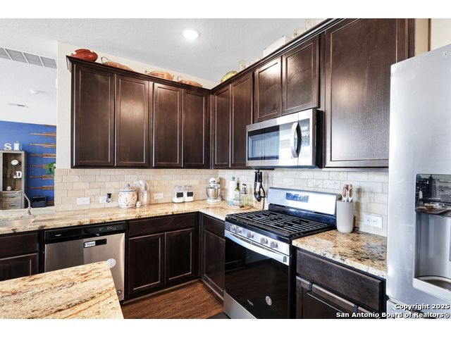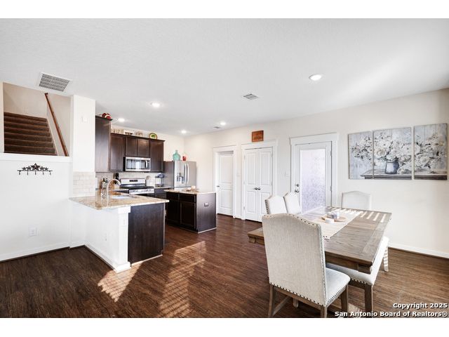 ***With terms of 20 percent down with 7.5 percent interest for 30 years*** This beautiful two-story Gehan-built Gray Point home offers style, comfort, and convenience in the desirable Paloma subdivision. Featuring 5 spacious bedrooms and 2.5 baths, this home is perfect for growing families or those who love to entertain. Step inside to find an open-concept layout with multiple living areas, a formal dining room, and a stunning kitchen with 42" cabinets, Sienna Beige granite countertops, stainless steel appliances, a gas range, and included refrigerator. The spacious primary suite boasts a double vanity, walk-in shower, and garden tub for ultimate relaxation. Enjoy outdoor living on the covered back patio, complete with a 6' privacy fence-ideal for cookouts and gatherings. Additional features include wired-for-solar, a water softener, and a two-car garage. Located just minutes from Randolph AFB, shopping, dining, and entertainment, this home also offers community amenities such as a playground, basketball court, and sports court right around the corner. Move-in ready and full of upgrades-this home has everything you're looking for!