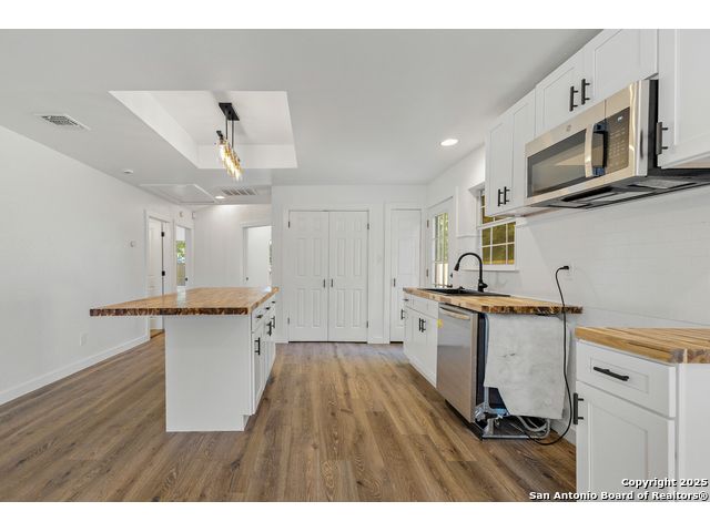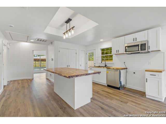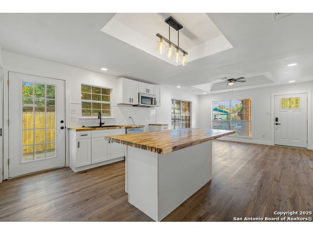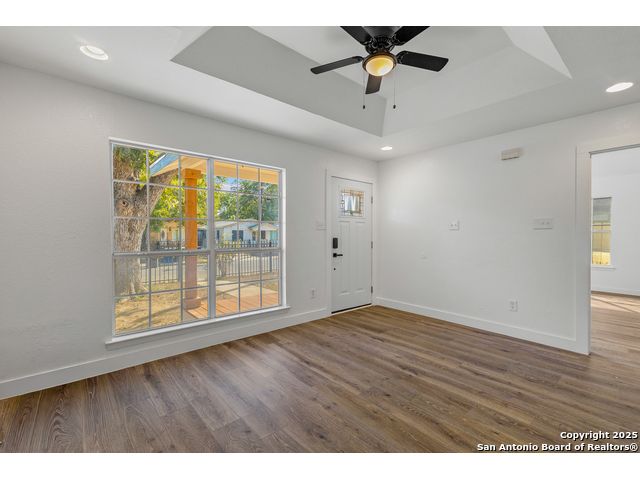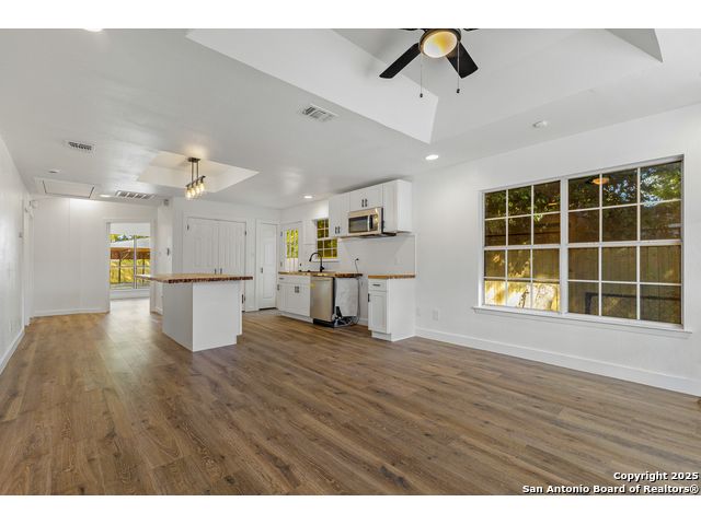 This beautiful home is in a well established neighborhood just a few minutes away from downtown San Antonio. A newly renovated property including 4 bedrooms and 2 full bathrooms, bedrooms are extremely spacious with new laminate floors. This property has an open floor plan perfect for hosting family and friends. Enjoy a brand new kitchen that includes a refrigerator, stove and cabinets. Also, the back yard has a covered 20x20 carport, enough room to park two cars. The back yard is very spacious with plenty of room for a pool or storage unit. Ideal for a first time home buyer or a buyer eager to live in this community.
