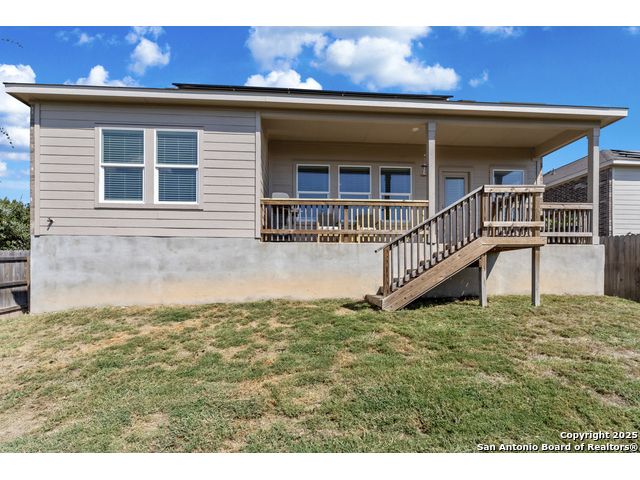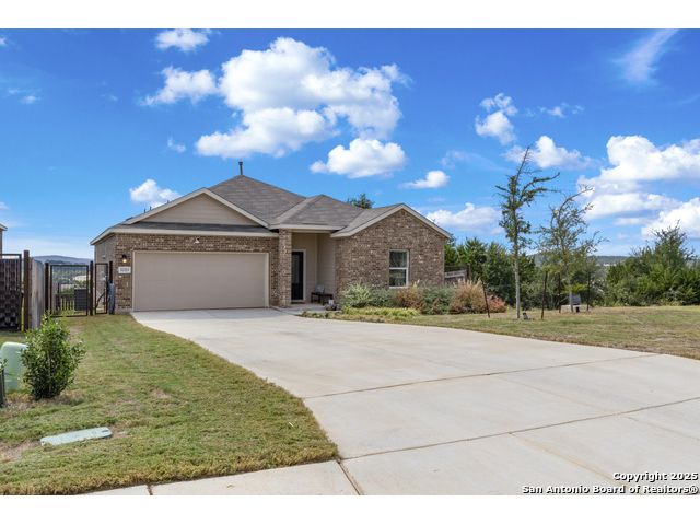Welcome to 32323 Star Anise Way sits on a cul-de-sac is a beautifully designed single-story home in the desirable Johnson Ranch community of Bulverde, Texas. Built in 2023, this residence blends modern craftsmanship with Hill Country charm, offering comfort, efficiency, and breathtaking views. Step inside to discover a bright, open-concept floor plan featuring high ceilings and abundant natural light. The stylish kitchen boasts sleek quartz countertops, subway tile backsplash, white shaker cabinetry, and stainless-steel appliances - the perfect setting for everyday living or entertaining. Enjoy peaceful mornings or evening sunsets from the covered back patio overlooking the rolling hills - your private outdoor retreat. The fenced yard offers a great balance of open space and low maintenance. Additional highlights include a spacious primary suite with an ensuite bath and walk-in closet, energy-efficient construction, and an attached two-car garage with an enormus driveway that can fit 6 cars!Located in a gated section of Johnson Ranch, residents enjoy community amenities such as a pool, playground, trails, and easy access to Highway 281, shopping, and top-rated Comal ISD schools.