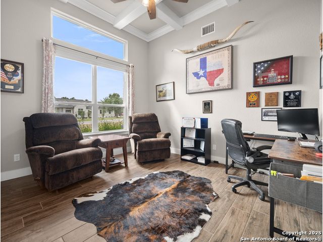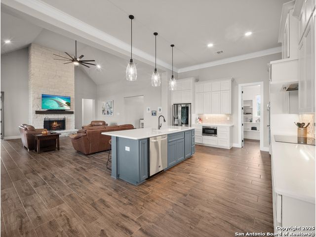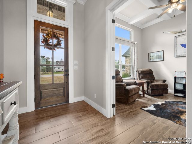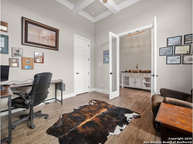 CALLING ALL VA BUYERS!! ASSUMABLE LOAN at 3.75 (Qualified VA buyers only)! THIS IS A GEM OF A RATE! Why wait to build when you can move right into this custom home on 1 acre with over 3,300 sq. ft. of living space. Inside, you'll find high-end finishes throughout: Custom Michael Edwards cabinetry, quartz countertops, oversized wood-grain tile floors, coffered ceiling details in the office, dining, and primary bedroom, plus beautiful custom lighting and foam insulation for efficiency. The Texas-sized kitchen boasts double ovens, a massive pantry, and a large island-perfect for gatherings. Natural light pours in through a wall of windows, creating an open, inviting atmosphere. This home features 3 spacious bedrooms each with en-suite bathrooms and walk-in closets, an office, and a flex room. The 3-car garage even has its own mini-split for climate control. Outside, enjoy the oversized covered patio with a cozy wood-burning fireplace-pre-wired for surround sound and a future spa/hot tub. Window coverings already in place Transferable builder's structural warranty. Zero loan origination fees with preferred lender. Schedule your private tour today and fall in love with this one-of-a-kind property!
