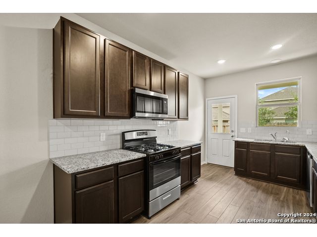 Love where you live in Blue Ridge Ranch in San Antonio, TX! The Brisbane floor plan is a charming 1-story home with 3 bedrooms, 2 bathrooms, and a 2-car garage. This home was made for entertaining with the kitchen open to both the dining and family rooms! The gourmet kitchen is sure to please with 42-inch cabinets and granite countertops! Retreat to the secluded Owner's Suite featuring double sinks, a sizable shower, and walk-in closet! Enjoy the great outdoors with full sod and a covered patio! Don't miss your opportunity to call Blue Ridge Ranch home, schedule a visit today!