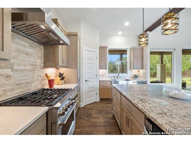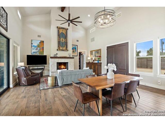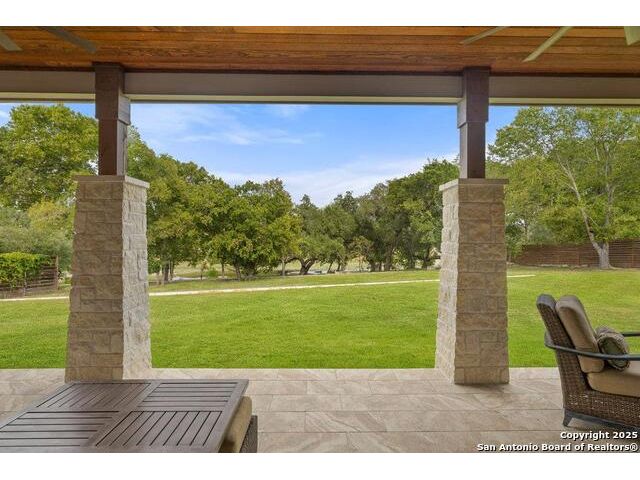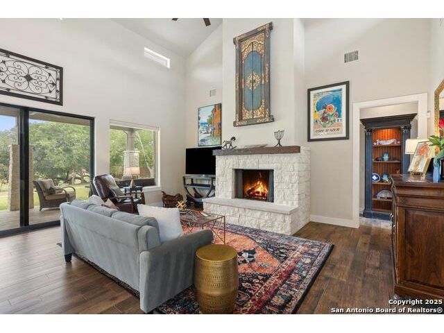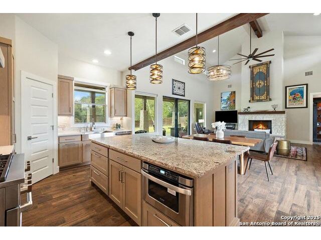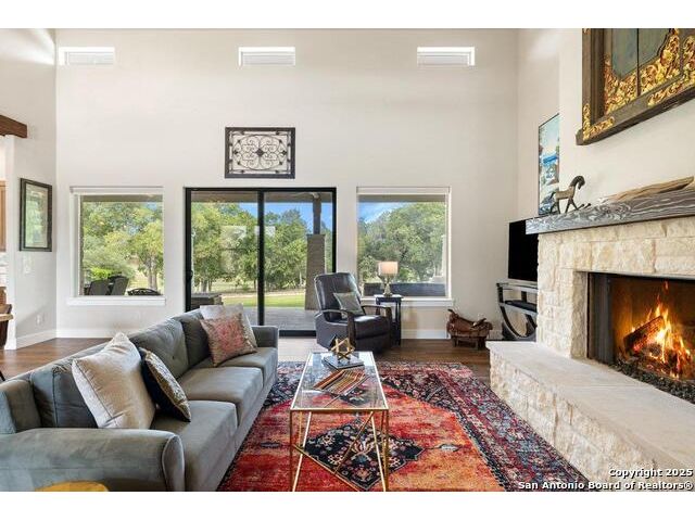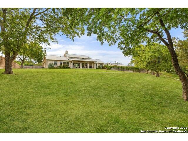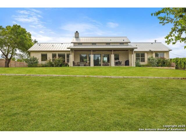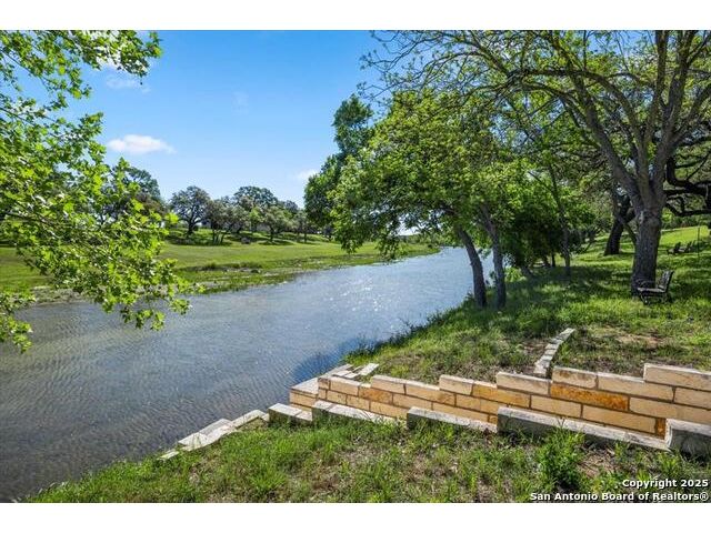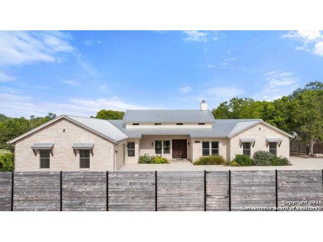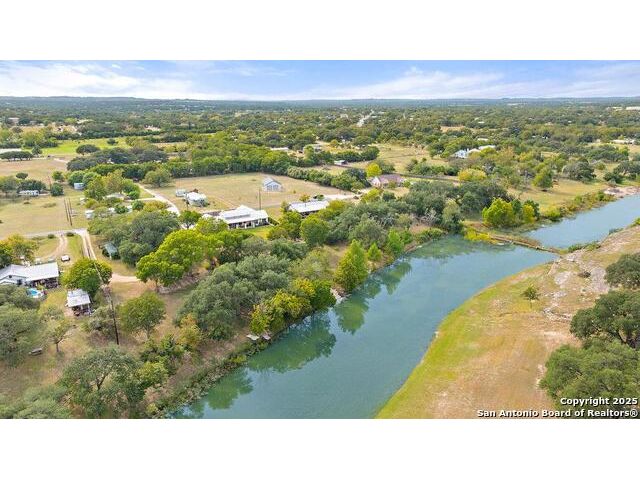 Nestled on nearly an acre along the serene Blanco River, this 6-bedroom, 4-bath residence is a rare offering of timeless Hill Country architecture paired with modern sophistication. Completed in May 2023, the home showcases enduring limestone construction, a sleek metal roof, and a private gated entrance for both elegance and security. Step inside to soaring, light-filled spaces designed for both grand entertaining and quiet retreat. Thoughtful details abound-from enhanced window treatments and energy-efficient climate systems to designer lighting and premium water filtration. The kitchen is appointed with touch-activated faucets, a built-in microwave drawer, and instant hot water, blending convenience with refined style. Smart technology seamlessly integrates into daily life with whole-home surge protection, Wi-Fi-enabled controls, and a comprehensive security system with cameras overlooking both the property and the riverbank. Outdoors, expansive covered living areas invite year-round enjoyment, complete with a stone patio and propane connections for outdoor cooking. A three-car garage with EV charging capability enhances both function and lifestyle. Set against the natural beauty of the Blanco River, this home is more than a residence-it's a private retreat, crafted with every modern comfort for those who value quality, privacy, and the best of Texas Hill Country living.