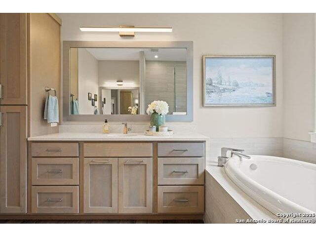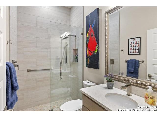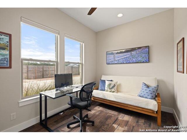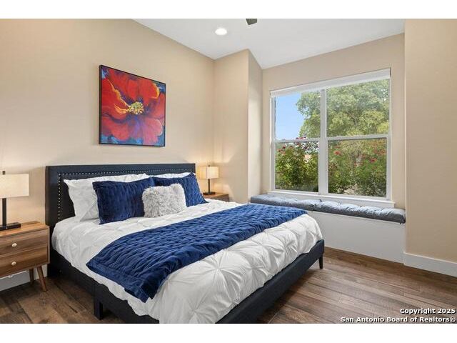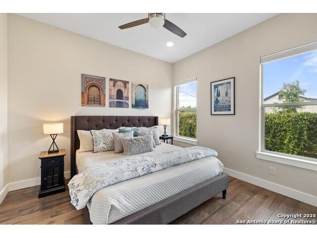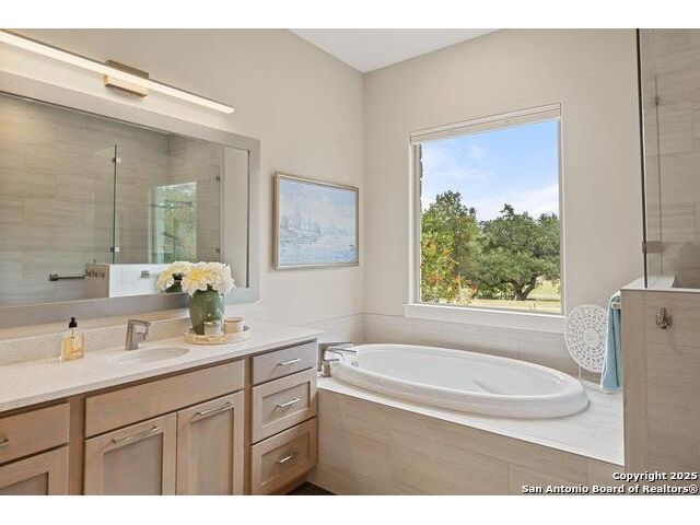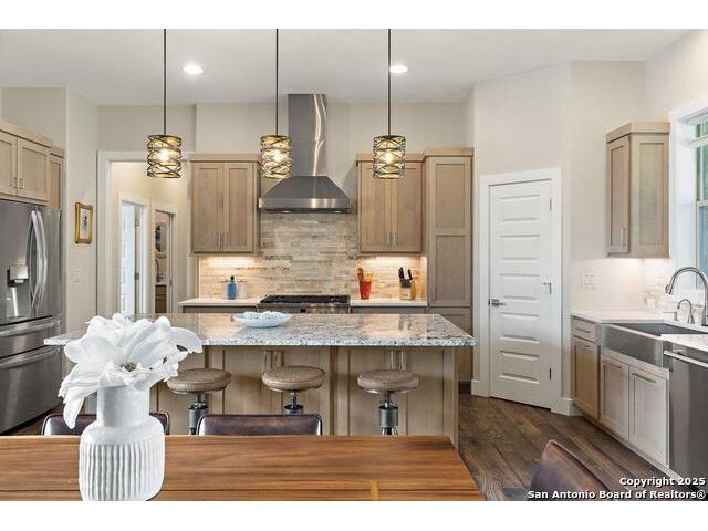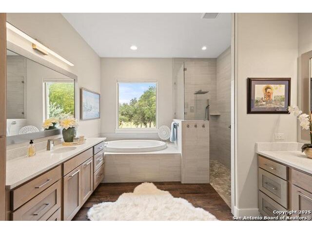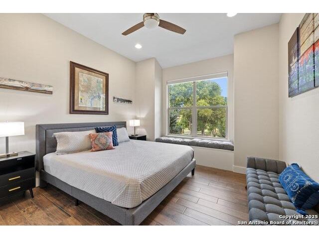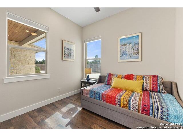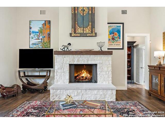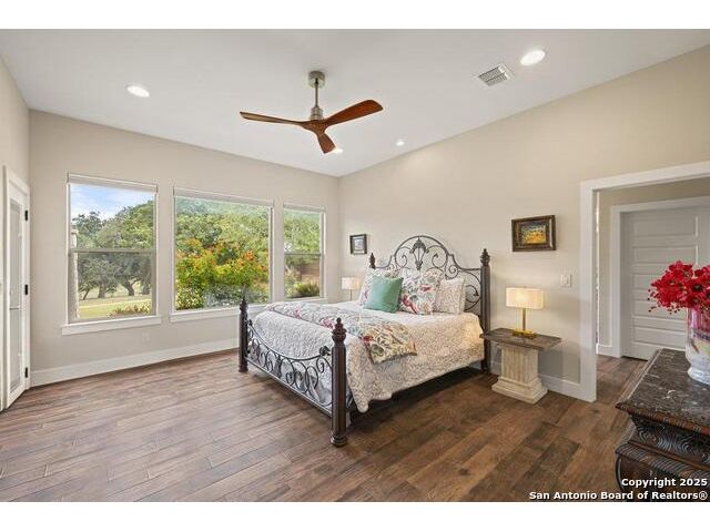 Nestled on nearly an acre along the serene Blanco River, this 6-bedroom, 4-bath residence is a rare offering of timeless Hill Country architecture paired with modern sophistication. Completed in May 2023, the home showcases enduring limestone construction, a sleek metal roof, and a private gated entrance for both elegance and security. Step inside to soaring, light-filled spaces designed for both grand entertaining and quiet retreat. Thoughtful details abound-from enhanced window treatments and energy-efficient climate systems to designer lighting and premium water filtration. The kitchen is appointed with touch-activated faucets, a built-in microwave drawer, and instant hot water, blending convenience with refined style. Smart technology seamlessly integrates into daily life with whole-home surge protection, Wi-Fi-enabled controls, and a comprehensive security system with cameras overlooking both the property and the riverbank. Outdoors, expansive covered living areas invite year-round enjoyment, complete with a stone patio and propane connections for outdoor cooking. A three-car garage with EV charging capability enhances both function and lifestyle. Set against the natural beauty of the Blanco River, this home is more than a residence-it's a private retreat, crafted with every modern comfort for those who value quality, privacy, and the best of Texas Hill Country living.