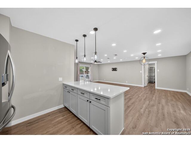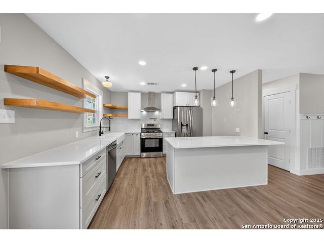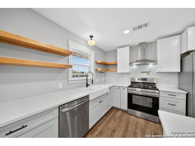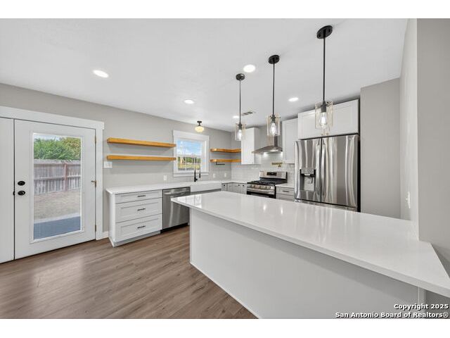 Beautifully well kept all brick 3 bed and 2 bath home. This home boasts a modern elegant style which is surely to draw in your attention. There is solid flooring throughout the entire house, solid kitchen countertops, stainless steel appliances with a gas cooking stove, large farmhouse sink, abundance of lighting throughout. Primary bath offers a unique antique style vanity with a huge walk-in shower. Stepping outside you will find a large slabbed patio, fully fenced in backyard, new metal roof, above ground swimming pool and 3 giant mature oak trees. Come see how this house can become your home.
