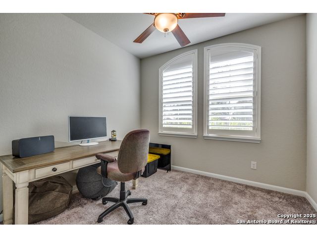 Relax and Exhale with the Hill Country views on your perfect patio! Perfectly located 10 minutes from downtown Boerne, this home offers 4 bedrooms, 3 full baths and a dedicated study! The bright- open floor plan for the main living areas allows bountiful natural light from countless windows with views galore! The kitchen boasts a huge breakfast bar and plenty of workspace. There is a split floor plan, with the primary suite separate from the secondary rooms. The primary offers a large room with sitting area, dual vanities in the bath with a huge walk in shower and rain head! Get lost in the massive primary closet with storage to the ceiling! The secondary rooms are comfortable and situated near the 2nd bath. There is a large dedicated study near the entrance of the home, with a full bath for guests. The 3 car garage is finished with an epoxy flooring, custom cabinets and overhead storage. Miralomas community residents enjoy access to hiking trails, 24/7 fitness center, resort-style pool, and a furnished clubhouse. The home offers a water softener, fully landscaped yards with sprinkler system and plantation shutters on all the windows.