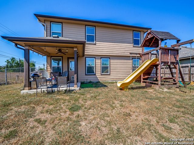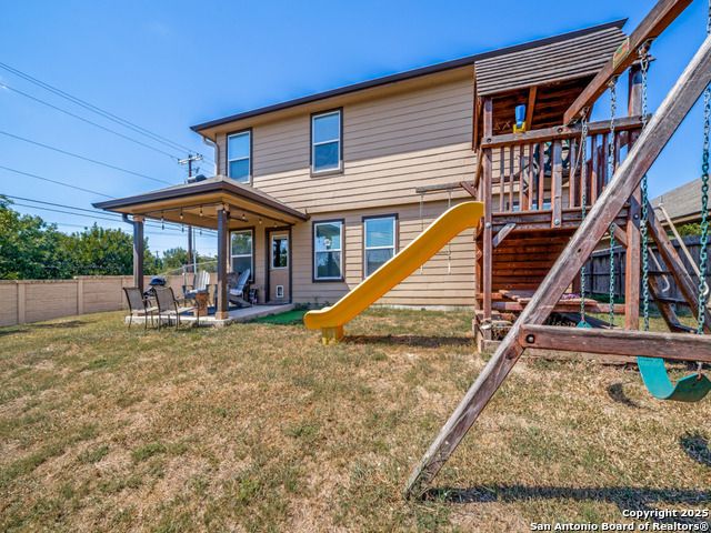 Welcome to this 5-bedroom, 3.5-bath home situated on a desirable corner lot. The primary suite is conveniently located on the main floor, offering privacy and comfort, while upstairs you'll find four additional bedrooms and a large playroom-perfect for family living or entertaining. Enjoy outdoor living on the covered patio, and bring your vision to unlock the full potential of this property. With its flexible floor plan and great bones, this home is an excellent investment opportunity. Located within the highly rated Boerne ISD, this home provides quick access to I-10 for an easy drive to both San Antonio and the heart of Boerne. Don't miss your chance to own a home with space, potential, and an unbeatable location!