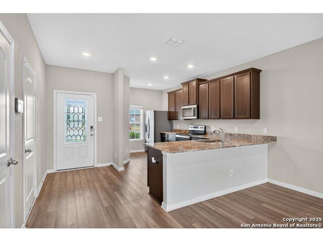 Energy smart and move in ready. Save from day one with $37,000 in paid off solar panels and a free refrigerator included. This 2,538 sqft home offers 5 bedrooms, 2.5 baths, and an open concept main level with luxury vinyl plank flooring. The downstairs primary suite features a massive walk in closet, double vanities, and a separate soaking tub and shower. The kitchen and all bathrooms are finished with granite countertops and the home is plumbed for a water softener. Kitchen has upgraded 42" cabinets. A large bonus room upstairs can serve as a second living area, game room, or home theater. Each of the additional 4 upstairs bedrooms are generous in size plus each have walk in closets. Enjoy tons of natural light, covered front and back porches, no back neighbors and a community park and playground nearby. Kitchen is also equipped with an Alkaline water filtration system and reverse osmosis system Space, savings, and comfort all in one place. Conveniently located near Lackland, Loop 1604 & a short drive to Loop 410 via Hwy 90.