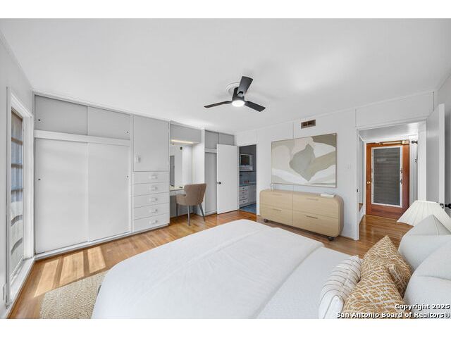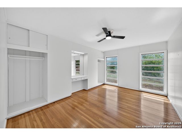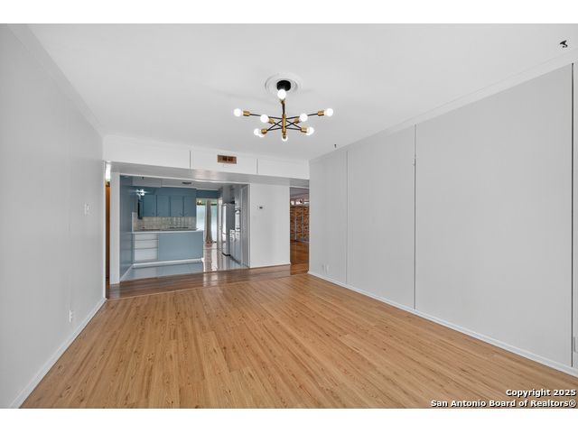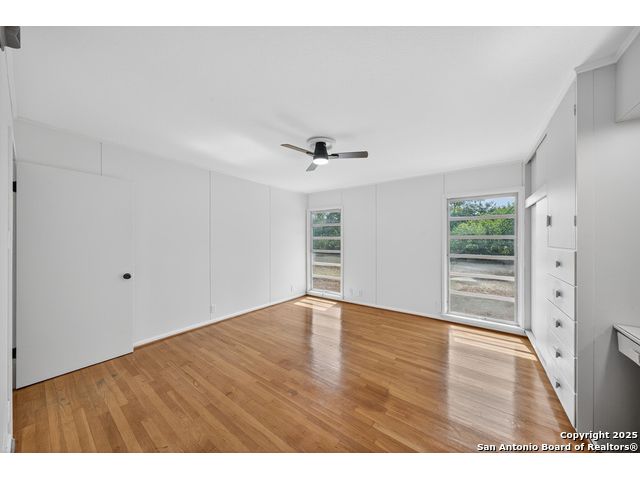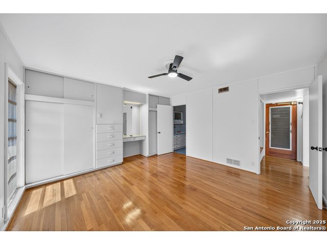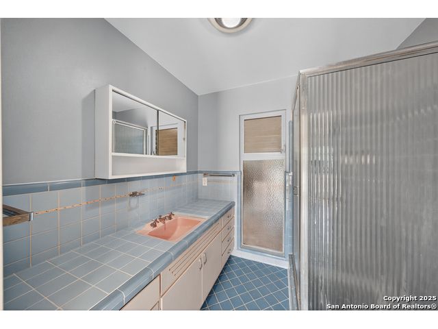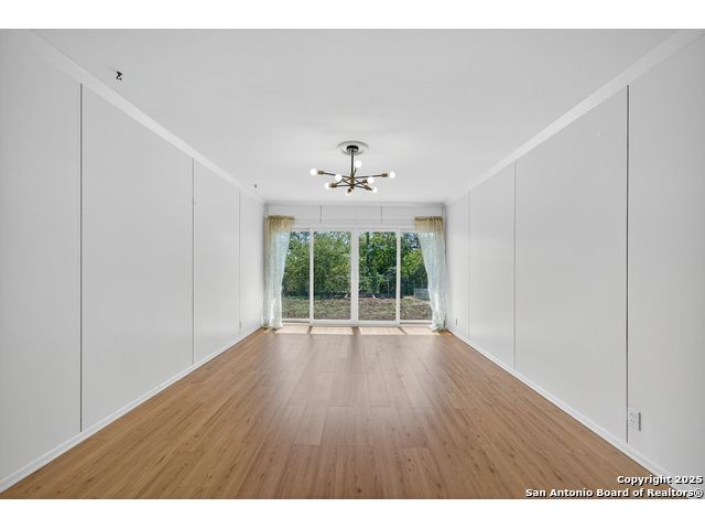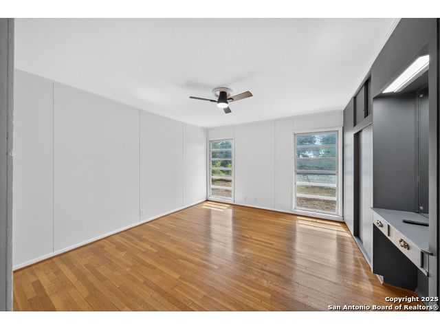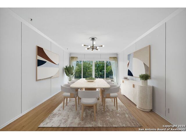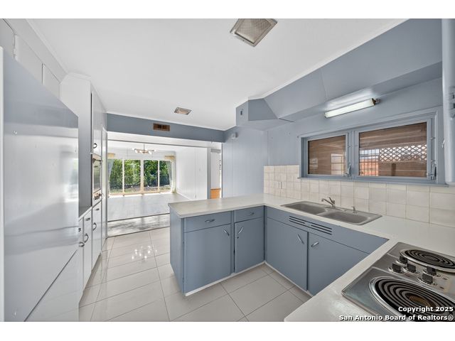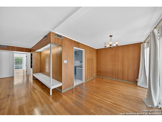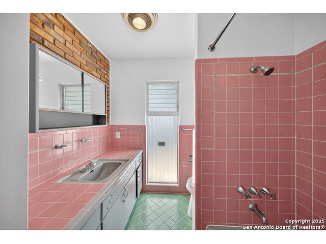 A true mid-century ranch filled with the character and nostalgia of the 1950's. The warm brick interior makes the space feel inviting and grounded, while a 20-foot stretch of floor-to-ceiling windows fills the living area with natural light and creates a beautiful connection between the indoors and the covered patio. Transfer the patio into another living area with outdoor dining, comfortable seating, and a projector for fall movie nights to spend evenings with family and friends. Inside, the original wood paneling adds texture and charm, giving the home a timeless midcentury warmth. The front room, where a 13-foot line of windows stretches across the wall filling it with natural light. Great location in the heart of San Antonio, just minutes from La Cantera, North Star, and Downtown. Wonderful neighbors that exemplify community. This house has warmth, history, and personality that make you feel at home the moment you walk in.