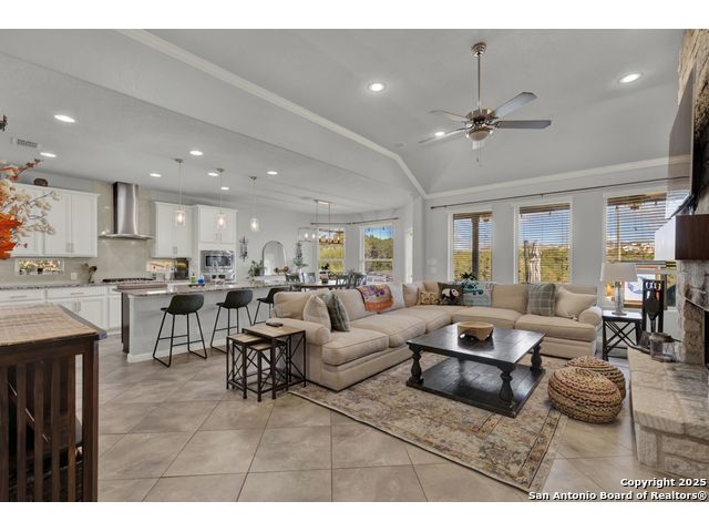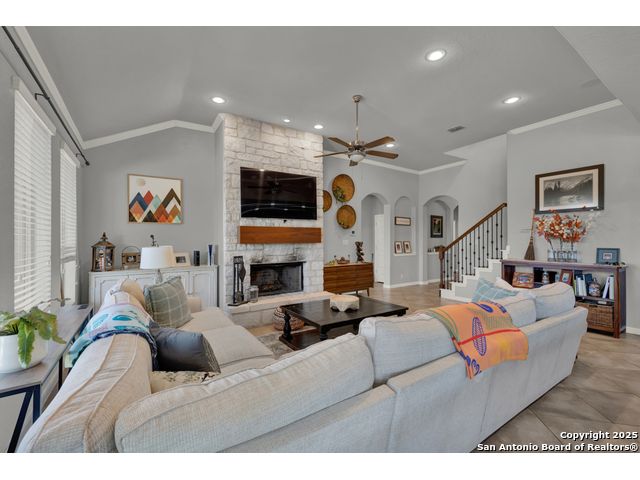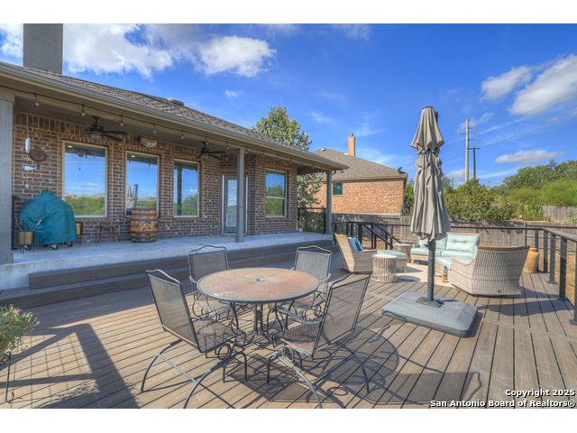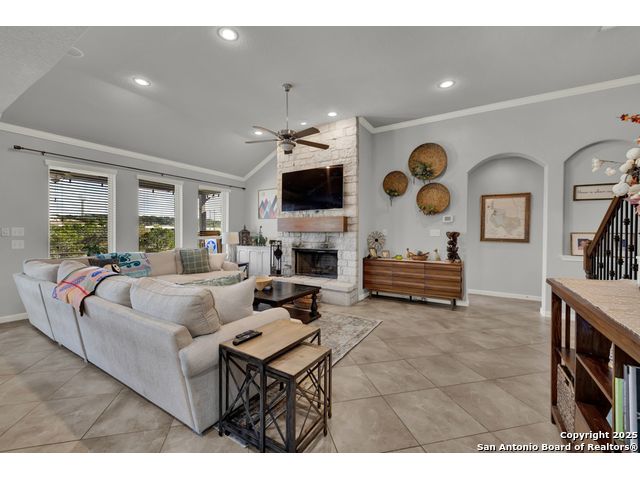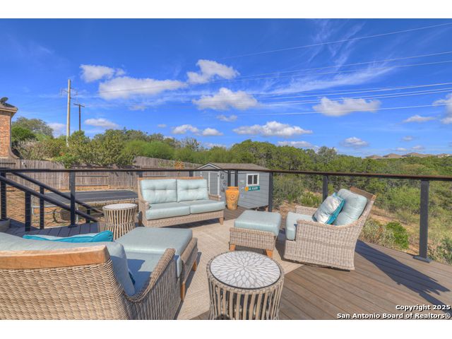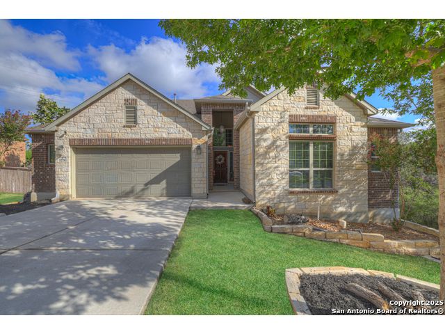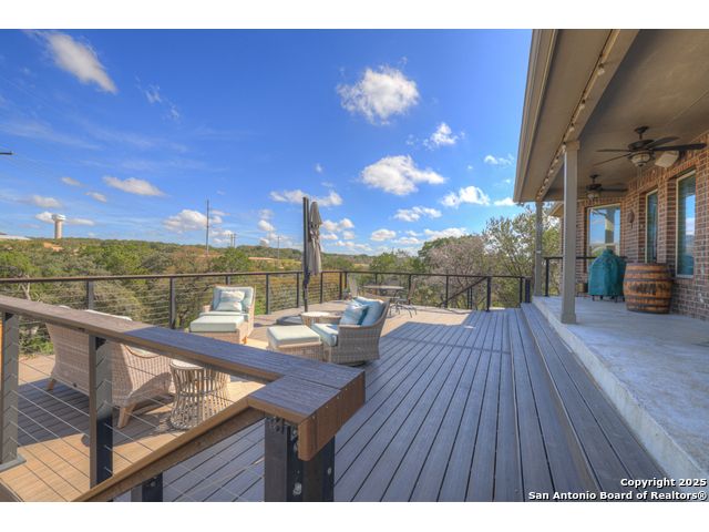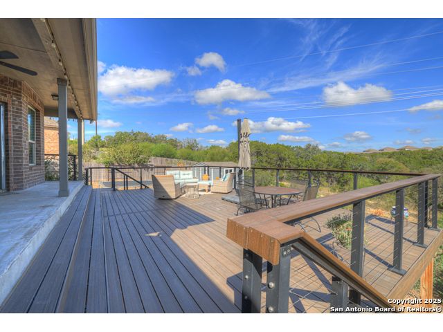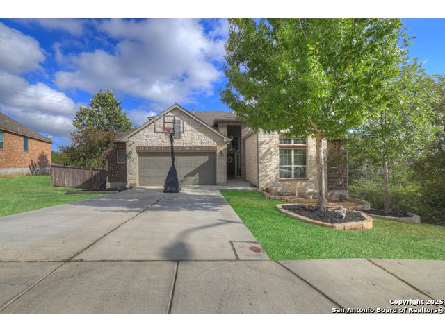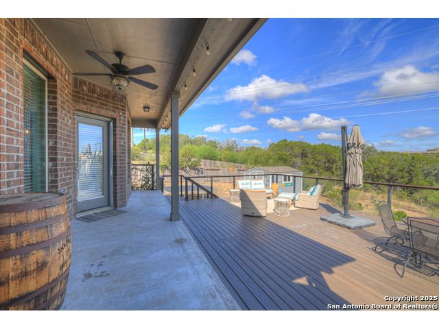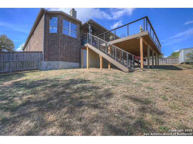 Welcome to the Estates of Stone Crossing. This spacious 1 1/2 story home offers a flexible 2657 Sq. Ft. floor plan that consists of 4 bedrooms, 3 bathrooms, 2 living areas, an open kitchen and dining area. Upon entering the home and exiting the foyer, you have access to 3 secondary bedrooms and their bathroom. One of the bedrooms is currently being used as an office/study. The master suite is spacious and offers an abundance of natural light and an incredible view. The master bathroom has dual sinks, granite tops and an oversized mirror plus a grand walk-in shower. The L-shaped closet provides lots of space for your apparel. The primary living area is accented with a wood burning fireplace. The living area, kitchen and dining are open and are great for relaxing or for entertainment. The kitchen has an island that enhances these features. There is an abundance of cabinets and a nice walk-in pantry. Whether you are relaxing or entertaining, you will appreciate the incredible view from several windows over the back yard and the neighboring wooded canyon. You can also enjoy this view while sitting on the 580 Sq. Ft. deck that is durably built with composite deck material. Our home also offers a second living area which is located on the second floor along with the 3rd full bathroom. This exquisite home sits on a .48-acre fenced lot and is conveniently located to easy access points within New Braunfels.