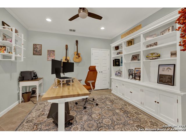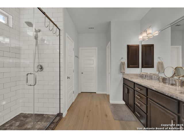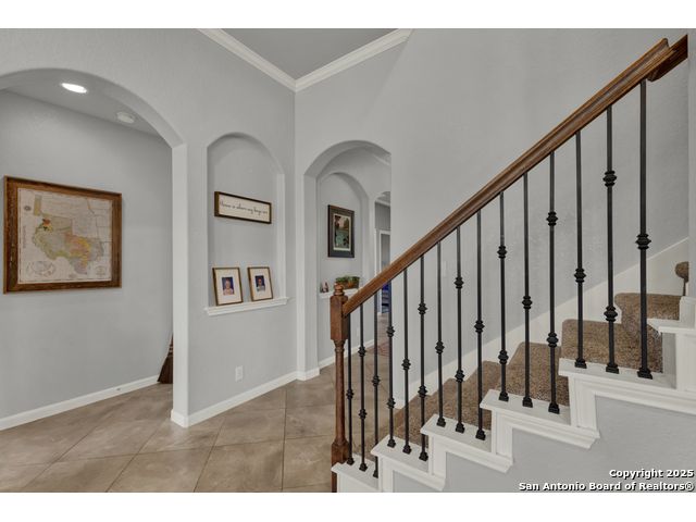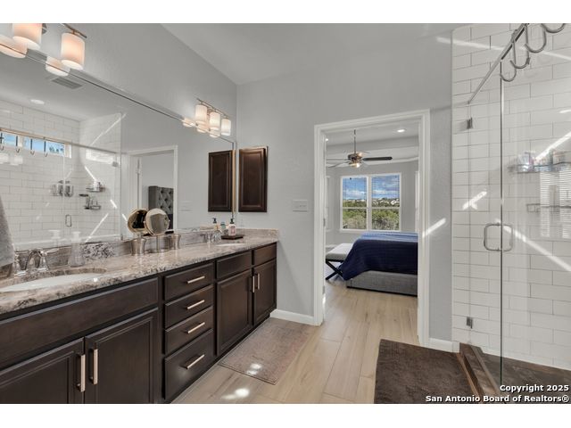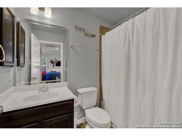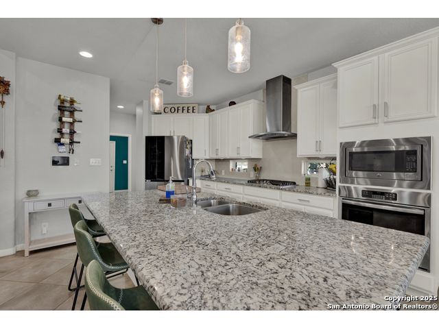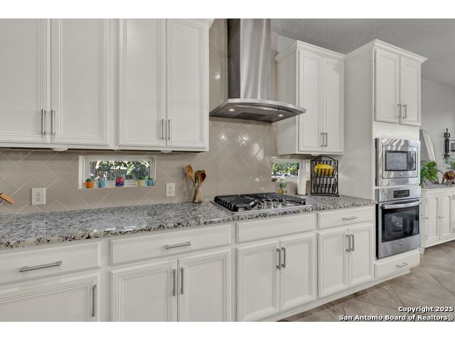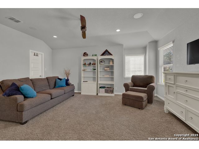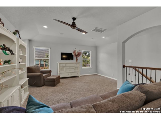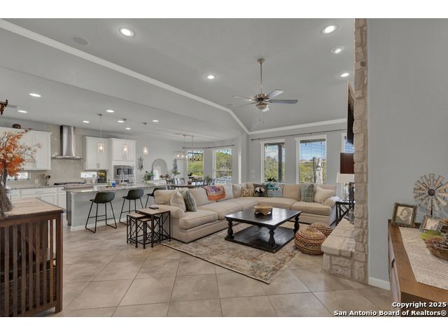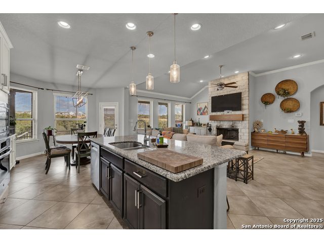 Welcome to the Estates of Stone Crossing. This spacious 1 1/2 story home offers a flexible 2657 Sq. Ft. floor plan that consists of 4 bedrooms, 3 bathrooms, 2 living areas, an open kitchen and dining area. Upon entering the home and exiting the foyer, you have access to 3 secondary bedrooms and their bathroom. One of the bedrooms is currently being used as an office/study. The master suite is spacious and offers an abundance of natural light and an incredible view. The master bathroom has dual sinks, granite tops and an oversized mirror plus a grand walk-in shower. The L-shaped closet provides lots of space for your apparel. The primary living area is accented with a wood burning fireplace. The living area, kitchen and dining are open and are great for relaxing or for entertainment. The kitchen has an island that enhances these features. There is an abundance of cabinets and a nice walk-in pantry. Whether you are relaxing or entertaining, you will appreciate the incredible view from several windows over the back yard and the neighboring wooded canyon. You can also enjoy this view while sitting on the 580 Sq. Ft. deck that is durably built with composite deck material. Our home also offers a second living area which is located on the second floor along with the 3rd full bathroom. This exquisite home sits on a .48-acre fenced lot and is conveniently located to easy access points within New Braunfels.