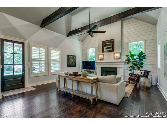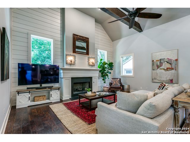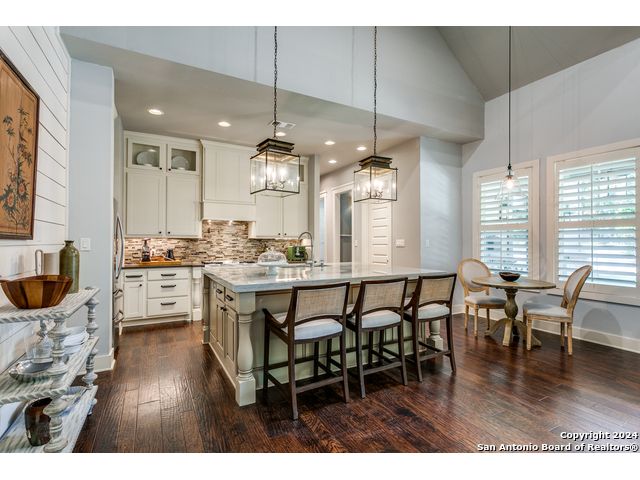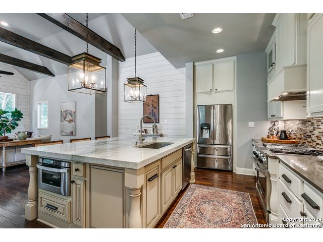 Modern Farmhouse design built by Dabney Homes is perfectly tailored to your lifestyle. Amazing architectural details and luxurious materials embrace both traditional and contemporary furnishings. Inspirational culinary kitchen, open to the living area for ease in entertaining, offers a center island with quartz counters, random width glass tiled backsplash, custom cabinetry and high performance KitchenAid stainless steel appliances including gas cooking. Interior details by Joyeux Home Decor.