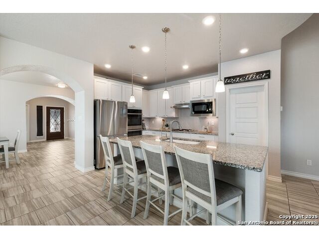 Welcome to 3227 Blenheim Park - the perfect place to call home in the beautiful Ventana community! This spacious 5-bedroom + 3.5-bath home offers plenty of room for everyone with an open-concept layout designed for everyday living and easy entertaining. The bright and airy family room with high ceilings flows right into the dining area and kitchen, creating a comfortable space where everyone can gather. The kitchen is the heart of the home, featuring granite countertops, stainless steel appliances, double ovens, an expansive island and ample cabinet space for all your cooking needs. Whether it's family dinners, weekend baking or morning coffee, this kitchen makes it all easy and enjoyable. The primary suite on the main level offers a peaceful retreat with a spa-like ensuite bath featuring double vanities, a soaking tub, separate shower and large walk-in closet. In addition, there's a private study making it easy to work from home or focus on projects. Upstairs you'll find a roomy game area with double Juliet balconies, perfect for playtime or a homework spot and a media room for movie nights. There are four additional spacious bedrooms and two secondary bathrooms offering space and versatility for family and guests. Enjoy evenings outdoors under the covered patio in the private backyard or take a stroll through the picturesque neighborhood featuring a community pool. This home also includes a two-car garage, energy-efficient features, water softener (2024) and modern finishes throughout. Located in the highly rated Comal ISD, and just minutes from shopping, dining, and schools, this home truly offers the best of comfort and convenience. With its friendly neighborhood vibe, parks and playgrounds nearby, Ventana is a great place to build lasting memories. With its thoughtful layout and stylish design, this home has everything you need and so much more!
