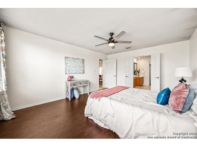 Located in a prime area zoned for highly rated schools and offering easy highway access with shopping and dining just minutes away, this beautiful home has it all. The charming curb appeal invites you in, while the open floor plan and abundant natural light make the interior warm and inviting. The home features three bedrooms plus a dedicated office, providing the perfect layout for work, relaxation, and family life. The kitchen opens to the living room, creating connection and openness while still offering defined spaces for gatherings. Retreat to the primary suite, which showcases wood-like flooring, a spacious ensuite bath with separate shower and soaking tub, dual vanities, and a large walk-in closet. Step outside to enjoy your spacious covered patio and custom extended deck, ideal for entertaining, kids at play, or pets to roam. With plenty of backyard space and a peaceful setting, this home is ready for your next chapter.