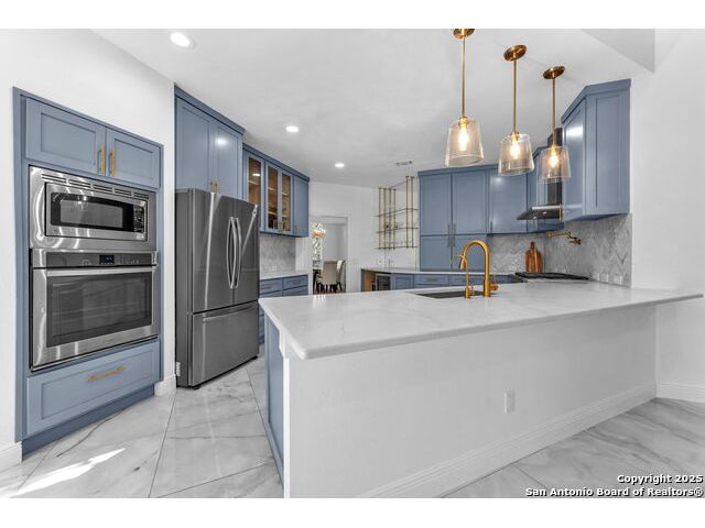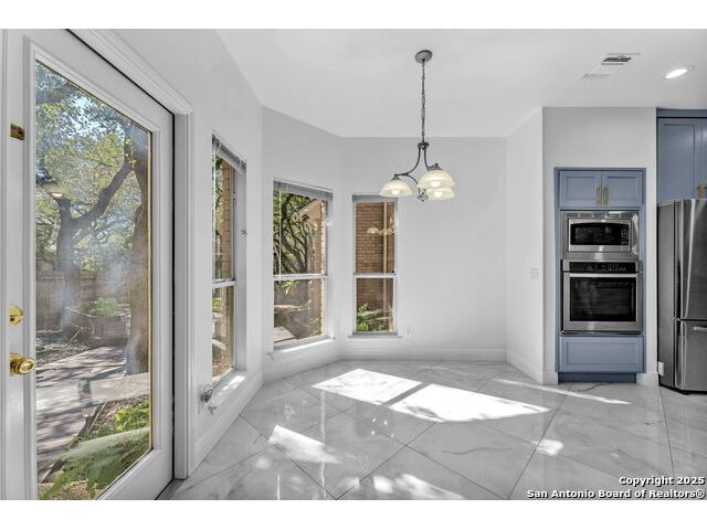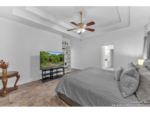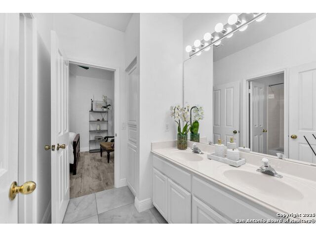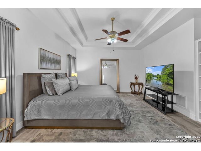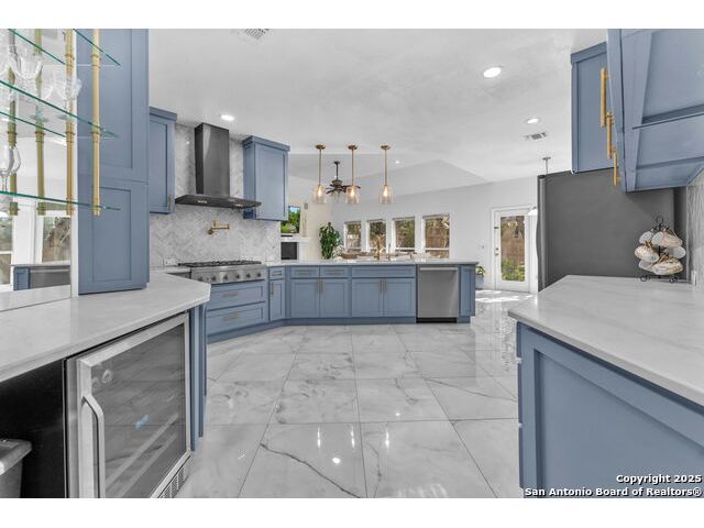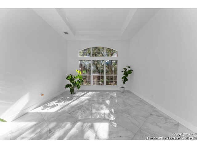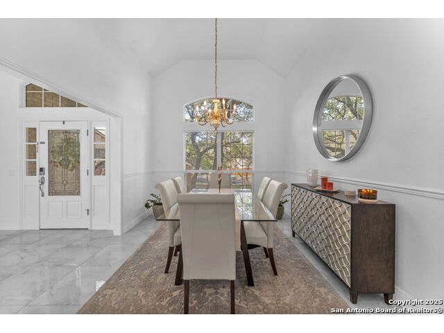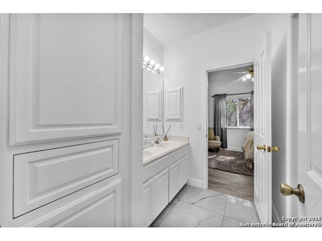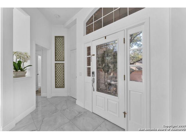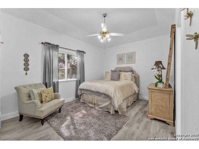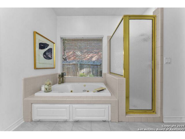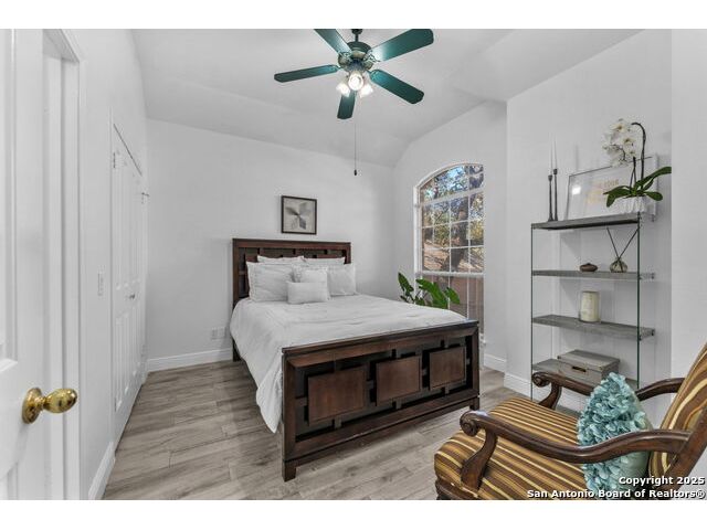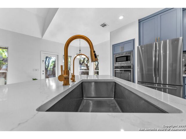 Welcome to this beautifully maintained single-story residence located in the prestigious, guard-gated community of Emerald Forest. Offering approximately 2,439 square feet of living space, this home sits on a generous, tree-shaded lot and combines timeless curb appeal with thoughtful modern updates. Inside, you'll find a spacious open floor plan designed for both everyday living and entertaining. The living area features vaulted ceilings, a cozy fireplace, and large picture windows that fill the home with natural light, creating a warm and inviting atmosphere. The kitchen has been tastefully updated with custom cabinetry, quartz countertops, and premium ceramic tile flooring, providing both style and function. Adjacent to the kitchen, the dining area offers an elegant space for family meals or gatherings with friends. The primary suite is privately situated and serves as a relaxing retreat with a large walk-in closet and a spa-inspired bath showcasing dual vanities, a soaking tub, and a separate shower. Two additional bedrooms provide flexibility for guests, a home office, or hobby space, each complemented by an updated full bath. Outside, enjoy a well-landscaped yard with mature trees and an oversized deck, perfect for outdoor dining, entertaining, or simply unwinding in the peaceful surroundings. The property has been lovingly cared for, with a newer roof, fresh exterior paint, and meticulous attention to detail throughout. Located within Emerald Forest, residents enjoy a secure, guard-gated environment and access to community amenities including a pool, tennis courts, sports courts, walking trails, and a clubhouse. The neighborhood's convenient North San Antonio location offers easy access to shopping, dining, highly rated schools, and major highways, ensuring comfort and convenience without sacrificing tranquility. Combining modern updates, classic design, and a premier location, 18210 Crystal Ridge Dr. is an exceptional opportunity to own a move-in-ready home in one of San Antonio's most desirable gated communities.