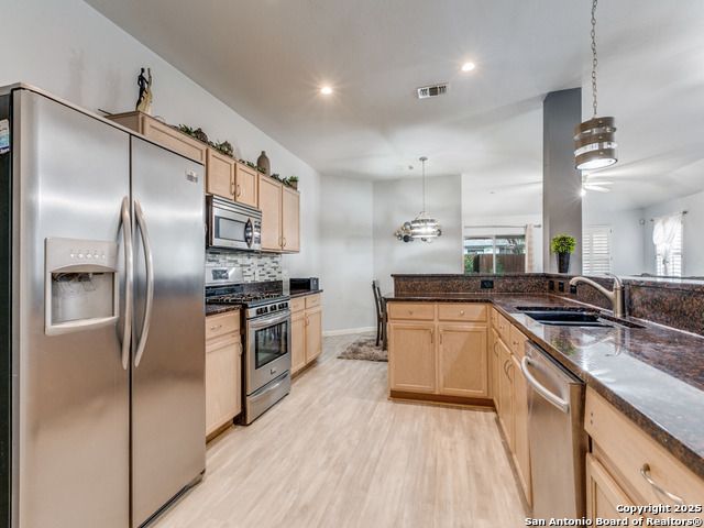 Beautifully Updated & Move-In Ready Home Near UTSA and the Medical Center! Ideally situated just minutes from UTSA, Loop 1604, I-10, and the Medical Center, this spacious 4-bedroom, 2-bath home offers a perfect blend of comfort, style, and convenience. Thoughtfully updated and meticulously maintained, it features an open and versatile floor plan with two dining areas, elegant granite countertops, and a GAS range-ideal for cooking enthusiasts. Enjoy the upgraded bathrooms with modern finishes, and relax outdoors under the covered patio-perfect for morning coffee or evening gatherings. This home is carpet-free throughout, adding both beauty and ease of maintenance. Recent upgrades include a new water heater, gutters, and window blinds for added value and peace of mind. The 2-car garage offers plenty of storage, and best of all, the refrigerator, washer, and dryer convey with the sale. Furniture is negotiable, making your move even easier! Located close to top-rated schools, premier shopping, dining, and entertainment, this home combines a prime location with exceptional value. Don't miss this opportunity-schedule your showing today before it's gone!