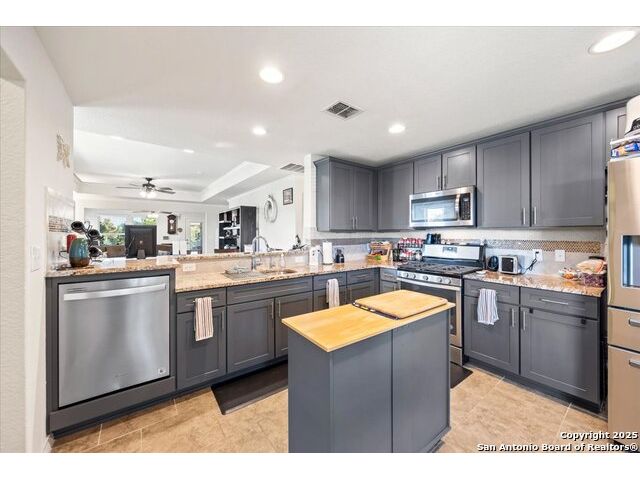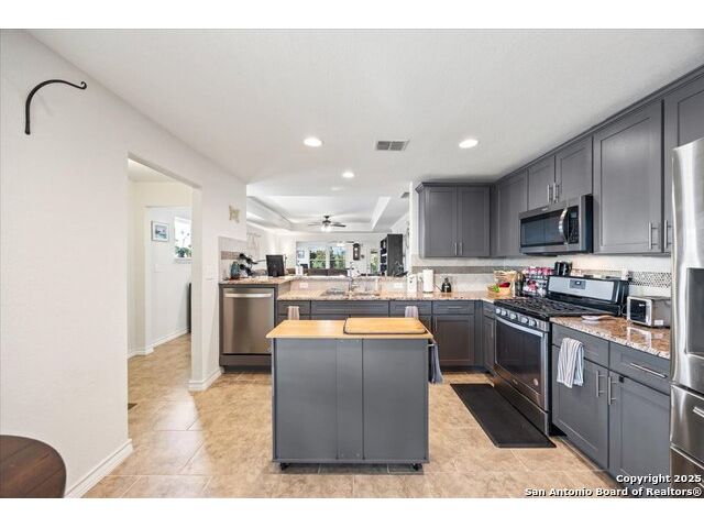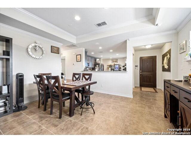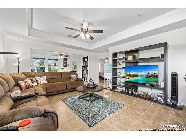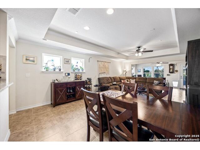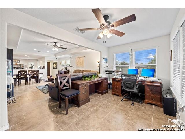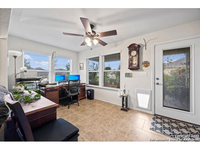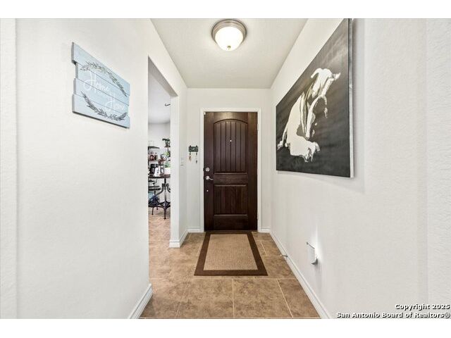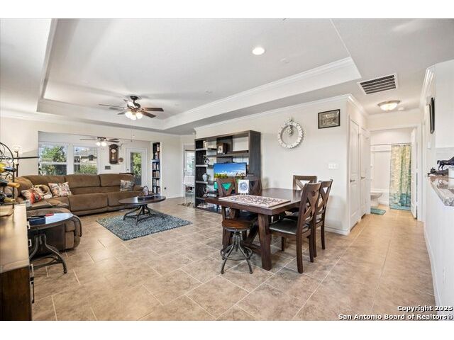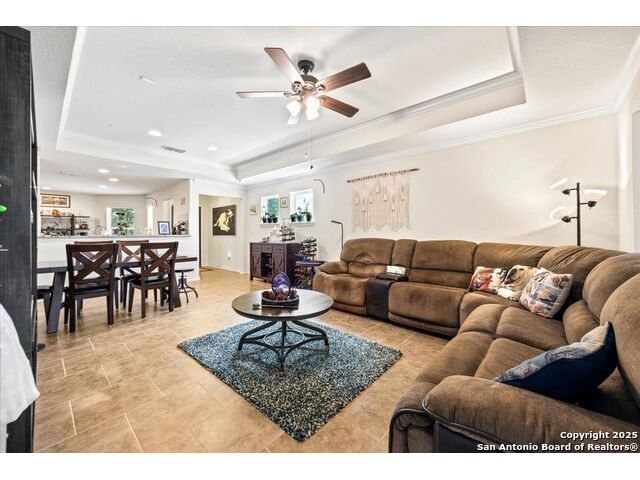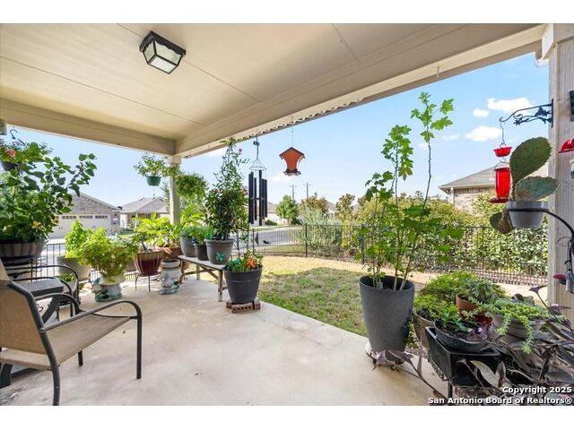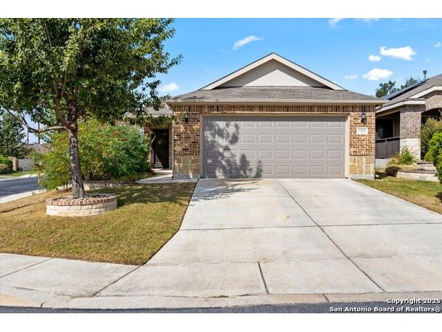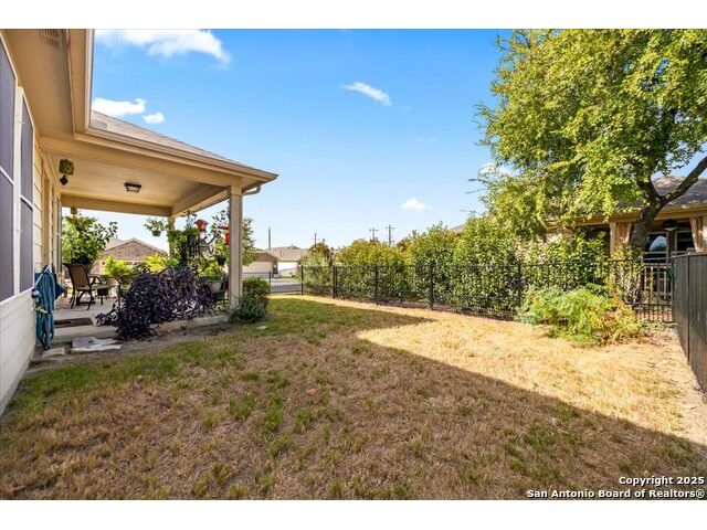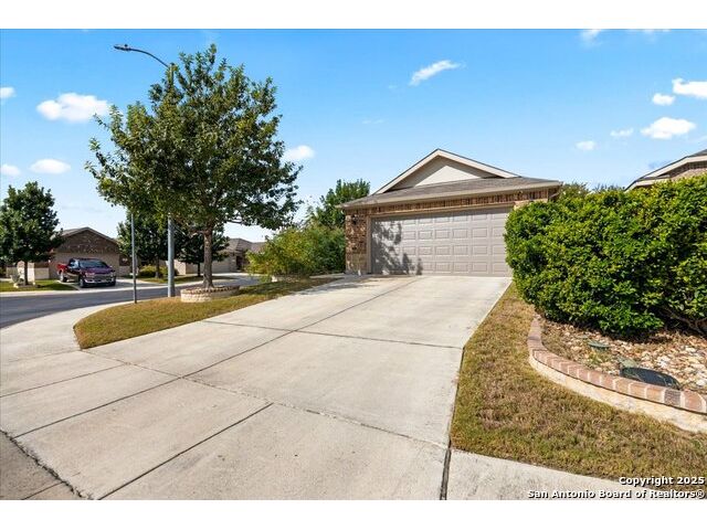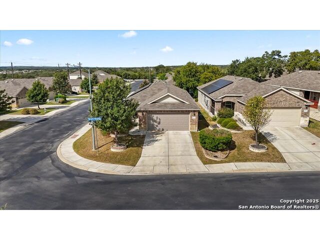Relaxed Living at its Best! Imagine mornings on your sun-dappled patio with coffee in hand, surrounded by lovely landscaping and the gentle rustle of the breeze on your spacious corner lot. This bright and open home welcomes you with an easy-flow split-bedroom layout, a bonus room perfect for hobbies or card games, and a freshly painted wrought iron fence that adds just the right touch of charm. The new insulated garage door and solar panels keep life comfortable-and the electric bills delightfully low. Located in San Antonio's premier 55+ Del Webb community, every day can feel like a vacation with resort-style amenities including indoor and outdoor pools, pickleball (your new favorite sport!), a grand clubhouse with ballroom, fitness center, and miles of scenic walking trails. Whether you're making new friends, hosting old ones, or just relaxing into this next great chapter-you'll wonder why you didn't move here sooner!