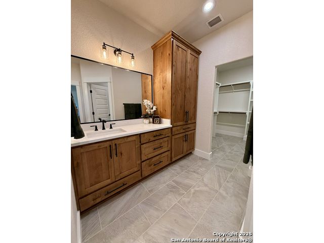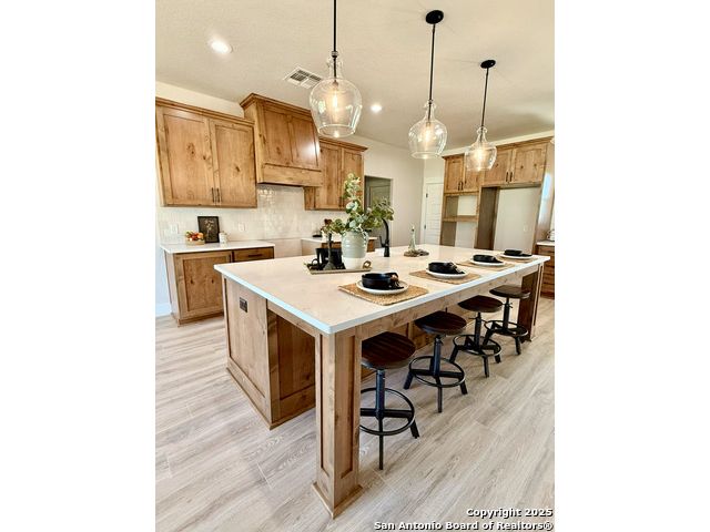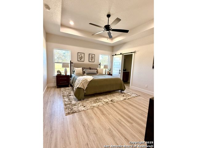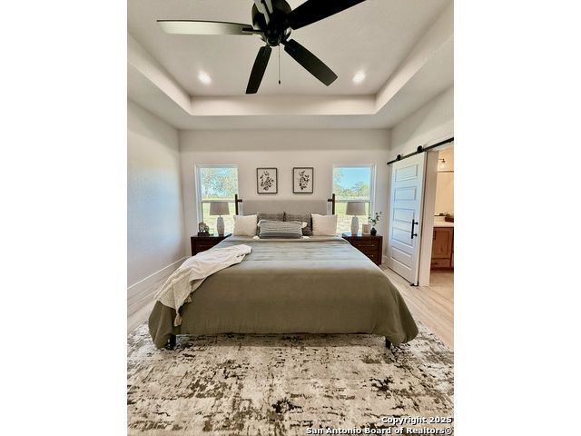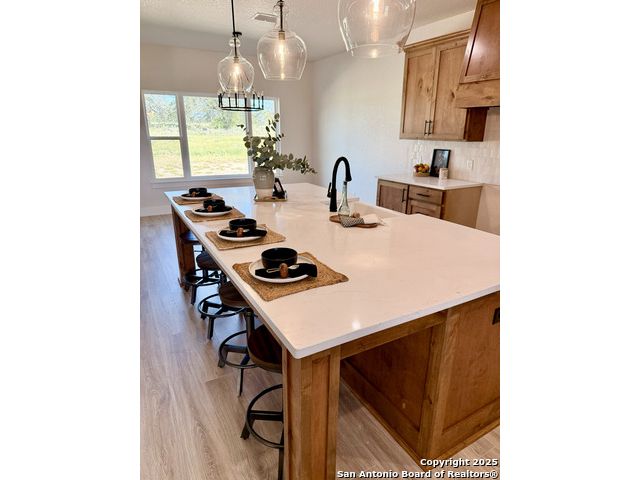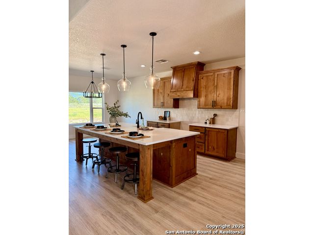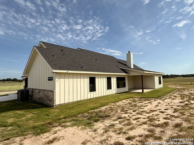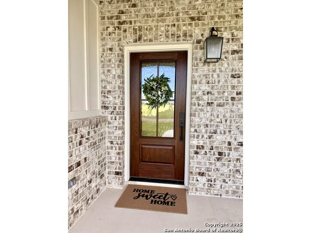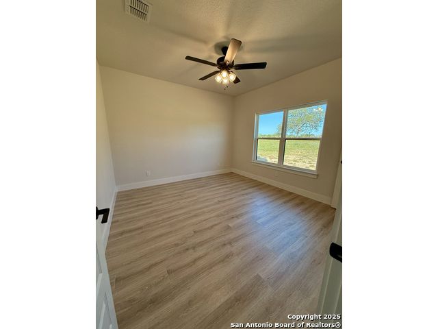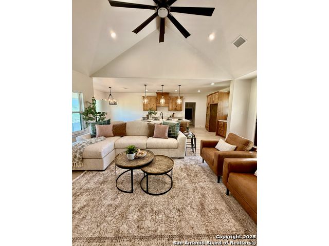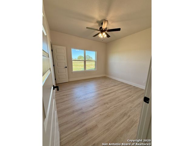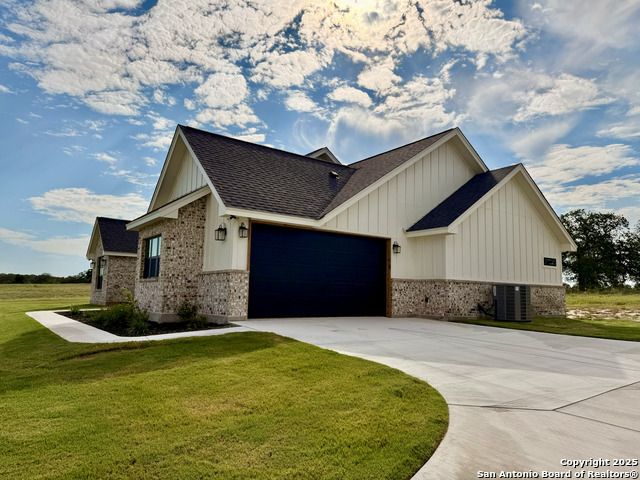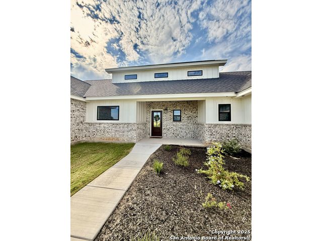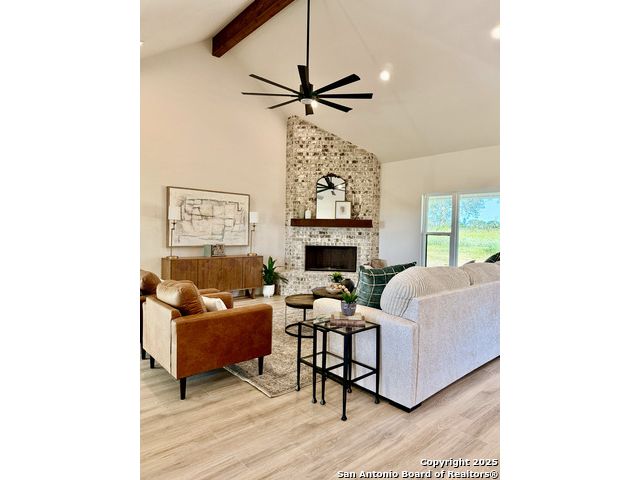 **Brand New Custom Home on 1 Acre in the Floresville Countryside** Experience country living at its finest in this stunning newly built 4-bedroom, 3-bath home with an office, perfectly located just 25 miles from San Antonio. Set on a spacious 1-acre lot, this 2,322 sq. ft. residence offers modern comfort, thoughtful design, and timeless craftsmanship. Step inside to find a bright, open-concept layout with a cathedral ceiling, wood-burning corner fireplace, and large windows that fill the family room with natural light. The gourmet kitchen features a large sit-at island, custom soft-close cabinetry, granite countertops, and a walk-in pantry-ideal for both everyday living and entertaining. The primary suite is a true retreat with a tray ceiling, and barn door entry to the spa-like ensuite boasting dual vanities, a large walk-in shower, and a spacious walk-in closet. On the opposite side of the home, you'll find three additional bedrooms, each with its own walk-in closet and ceiling fan. The front bedroom includes a private ensuite, perfect for guests or multi-generational living. A convenient mudroom with built-in bench and storage connects the attached 2-car garage to the main living area. The laundry room offers additional cabinetry and a clothes rod, continuing the home's cohesive, custom design. The outside has been beautifully landscaped including grass all around and a sprinkler system. Enjoy peaceful country views with city conveniences just minutes away. **Don't miss your chance to own this beautiful new custom home in the heart of Floresville's countryside!**