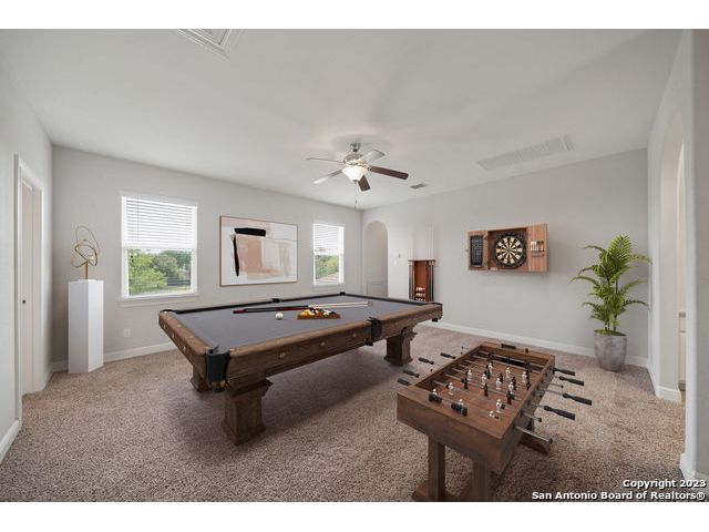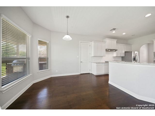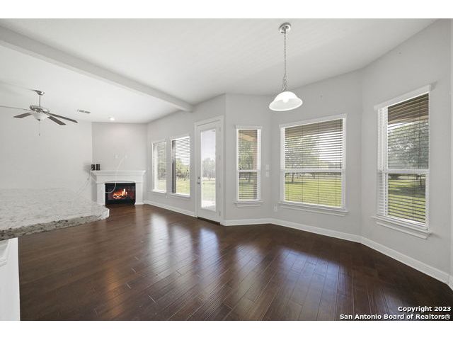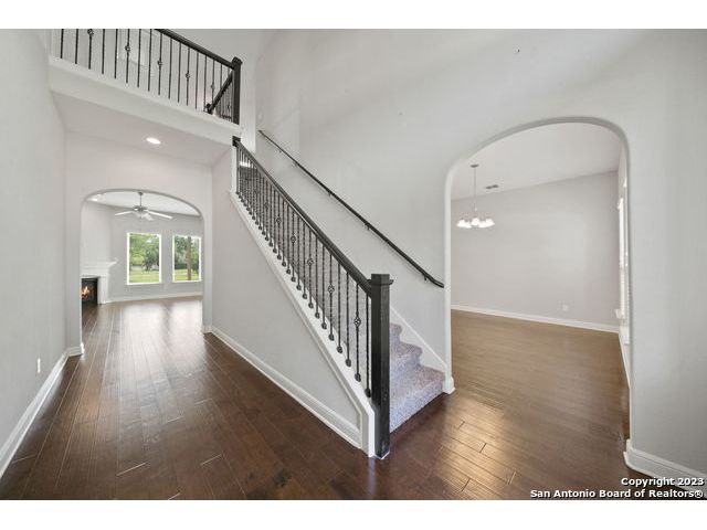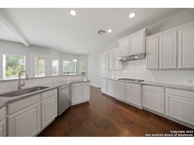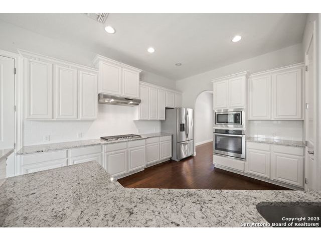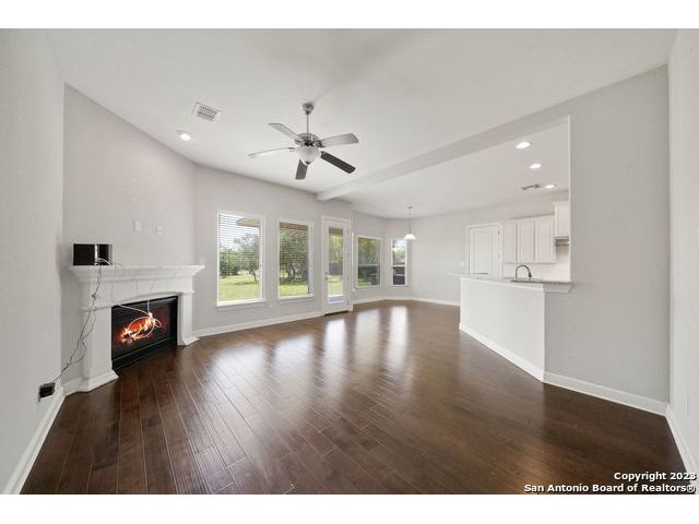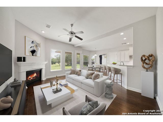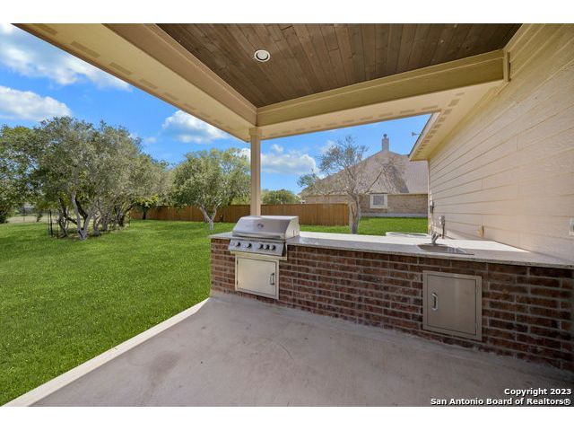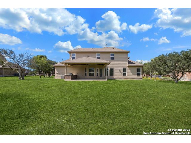 Discover a serene and tranquil park-like setting on a generous lot 0.56 acre lot. High ceilings with an open floorpan. The beautiful kitchen features granite countertops, large walkin pantry, and a gas cooktop perfect for entertaining family and friends with your favorite gourmet dishes and holiday meals. Step outside to your backyard oasis and outdoor kitchen for summer BBQs and a relaxing evening at home. Cozy gas fireplace for snuggling on those cold winter nights. The upstairs spacious loft is a is a great escape with an added study center. Hiking trails in the community. Weekend opportunities abound. Location is central and allows exploring to the river, camping, hill country wine tours, Zoo, Riverwalk, Seaworld and Fiesta Texas. Commute to UTSA, the new Microsoft Data Center, and San Antonio metropolitan area for employment. Immediate occupancy and immaculate, don't miss this one! Fresh Paint move-in ready. WELCOME HOME!