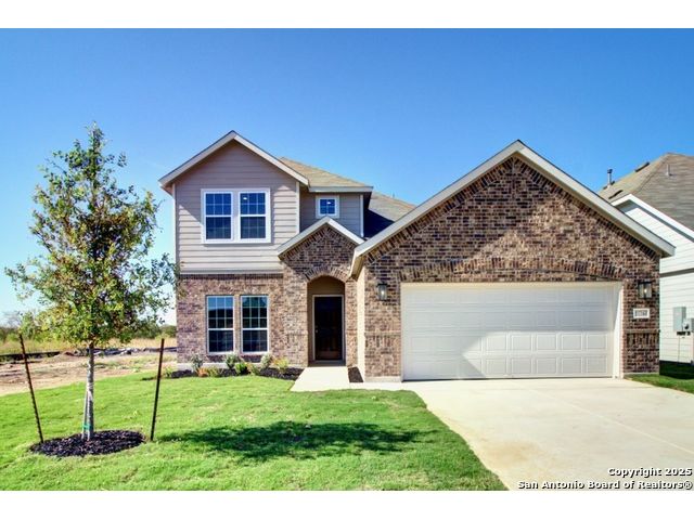 Welcome home to the beautiful Meyerson Plan by DRB Homes. This spacious two story home offers an impressive design with five bedrooms, three bathrooms, a two car garage, and a flexible room that can be used as an office, study, or playroom. The main level showcases the open concept living area, including the great room, kitchen, and dining space, along with the owner's suite and an additional secondary bedroom that is perfect for guests. The kitchen features a large island, stainless steel gas appliances, and a convenient corner pantry. The owner's suite includes a double vanity, a walk in shower, and an oversized closet providing ample storage space. Upstairs, you will find three secondary bedrooms along with a generous game room, perfect for entertainment or relaxation. The exterior features brick on one side and a covered patio ideal for outdoor gatherings. Westridge residents will also enjoy a future community pool, playground, and sports courts, creating a perfect place to call home.