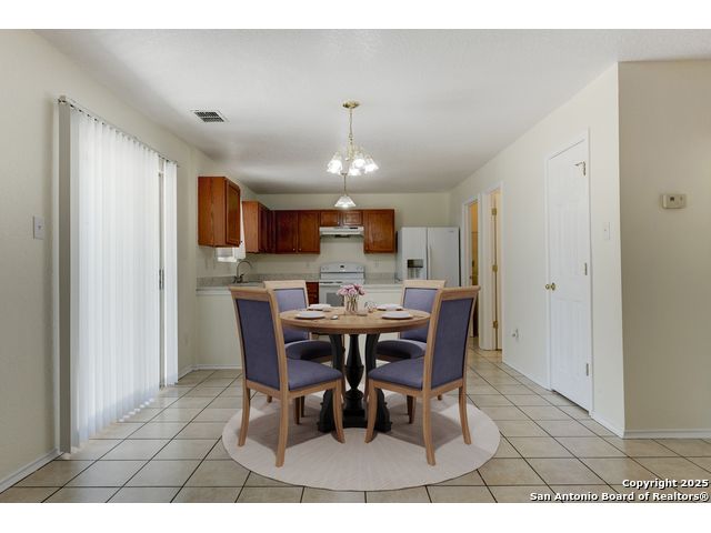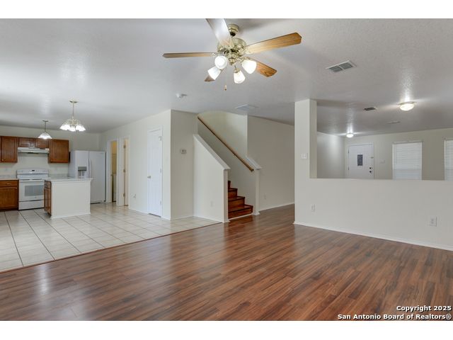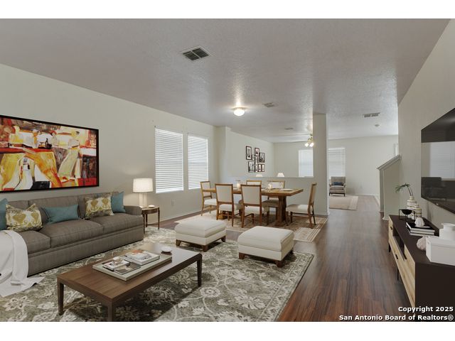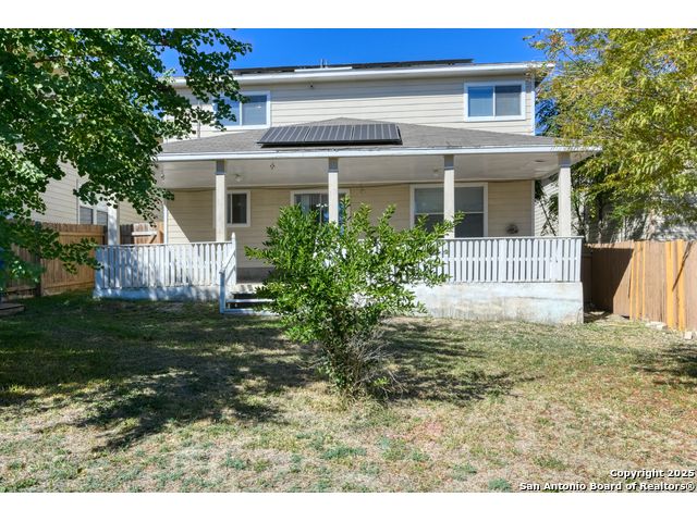Imagine pulling into the driveway, the afternoon light filtering through the mature shade tree that frames the front of your charming two-story home. The welcoming front porch invites you to pause for a moment, take a breath, and enjoy the quiet comfort of coming home. As you step inside, the sense of space and light instantly makes you feel at ease. The open living/dining combo flows beautifully, designed for everyday comfort and connection. Laminate wood flooring guides you from the front gathering space to the second living area at the back of the home, where windows fill the room with soft, natural light. The warm tones and durable finishes create a setting that feels stylish and ready to be lived in. Nearby, the dining area offers a perfect spot for family meals or casual evenings with friends, seamlessly open to the kitchen for easy entertaining. In the kitchen, generous quartz countertops and plentiful cabinetry offer both function and charm, while a smooth-top range and thoughtful updates-such as a refreshed sink and faucet and an upgraded garbage disposal-make meal preparation effortless. From here, you can stay connected with loved ones in the adjoining spaces. Just off the kitchen, a half bath and the laundry room add convenience to the main level. Upstairs, the loft awaits your imagination-a space that can easily transform into a third living area, playroom, or home office. The spacious primary suite provides a calm retreat at the end of the day, featuring a private bath with a double vanity and a walk-in closet to keep everything organized. The secondary bedrooms offer comfort and space, each with ample storage and access to a full bath. Step through the sliding doors and picture evenings spent under the covered back patio that stretches the width of the home. There's room for outdoor dining, morning coffee, or simply enjoying the breeze in your own private retreat. The fenced backyard is dotted with mature trees and open green space-perfect for play, pets, or gardening-and even includes a storage shed to keep yard tools and equipment neatly tucked away. From the solar panels on the roof that add energy efficiency to the thoughtful design throughout, this home is ready for you to move in and start creating memories. It's a place where comfort meets possibility-and where every day feels like coming home. Please be aware that some photos have been virtually staged.