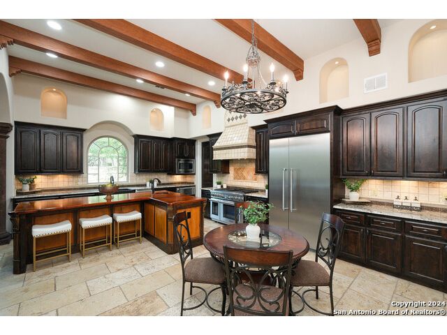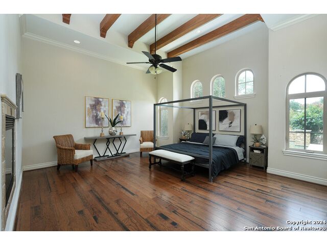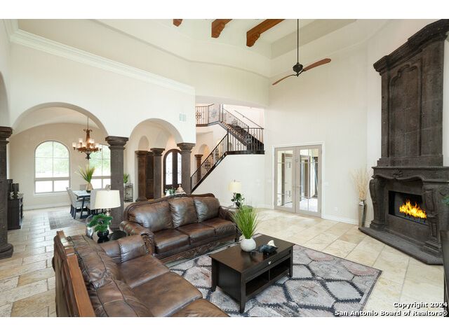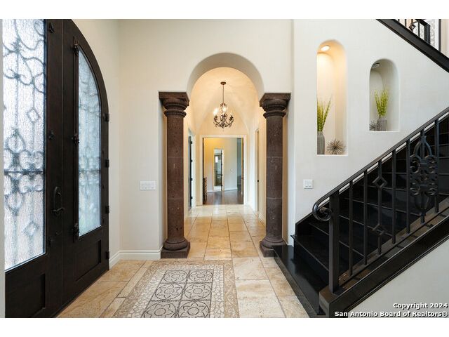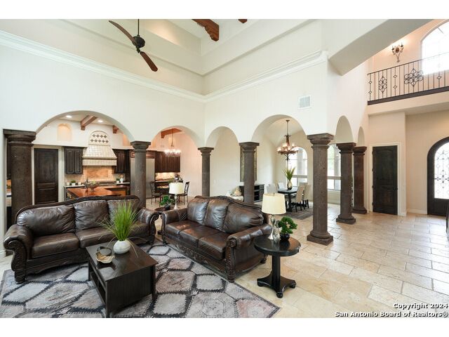 * Owner Finance available - 3 yr Balloon* Discover the epitome of luxury living at 139 Palmilla Court, a stunning Spanish-Mediterranean estate in the prestigious gated and guarded Dominion Enclave. This home is designed for those who value elegance, comfort, and seamless entertaining. From the moment you enter, you'll be captivated by the exquisite details, including a spiraling staircase with custom iron railing, wood-beam ceilings, Italian tiled floors, Cantera architectural columns, and a charming Spanish tiled roof.